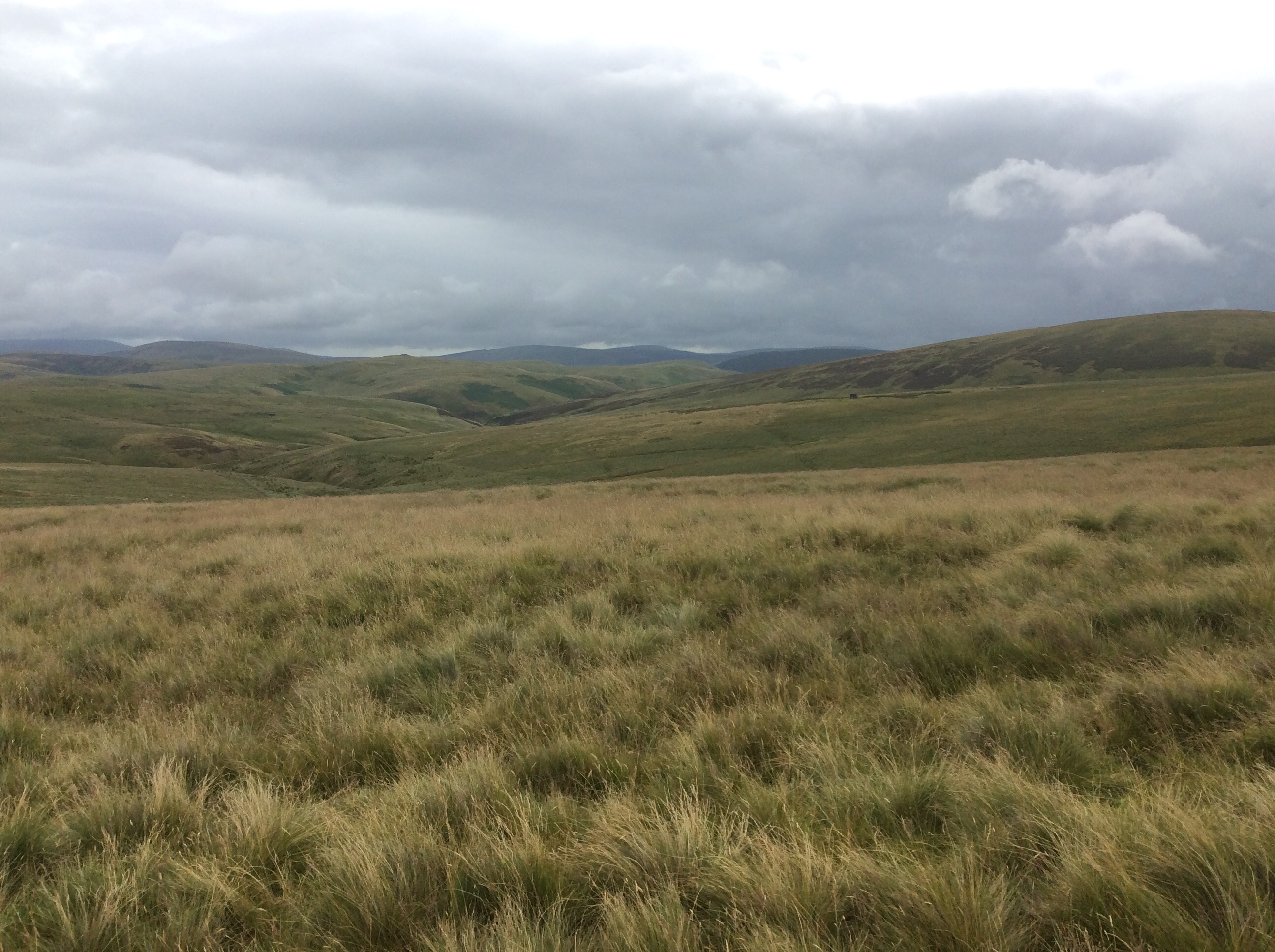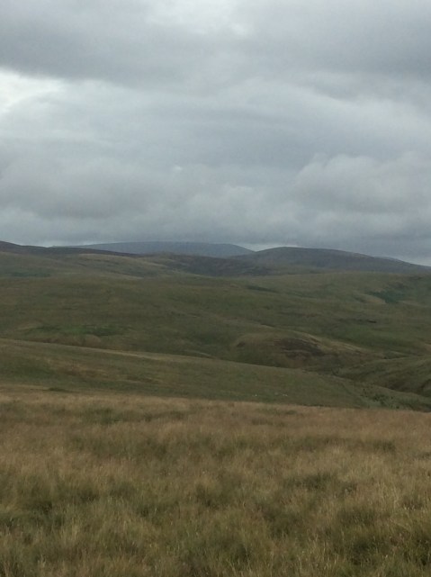 And the weather varied from rain to clearer (not shine) and back again. The featureless harshness of the borders was slowly giving way to Peak District/Yorkshire Dales type country below me. But up on top it was getting difficult to follow the Way. I needed my GPS to keep on track. This is the track that, apparently, 10,000 people come through every year. Yeah right.