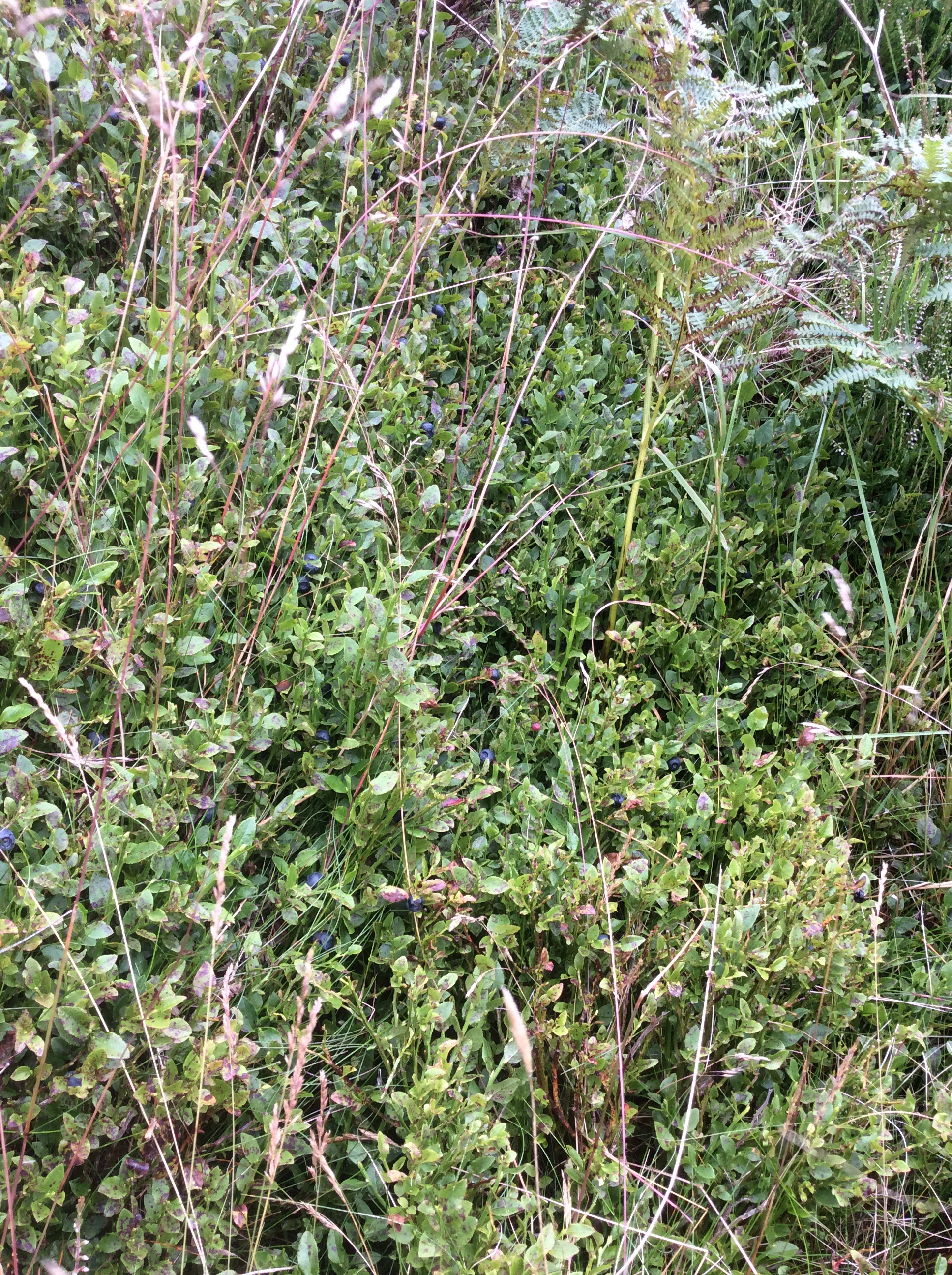 Dropping further down the path becomes a climb down a rock edge. Part way down I came face to face with a patch of ripe bilberries. Sheltered from cold winds and facing south they were ripe very early, and I stained my fingers collecting and eating them. Fantastic.