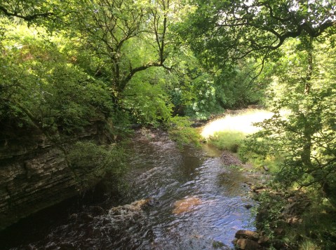 He sun illuminating foliage at the side of Warks Burn.