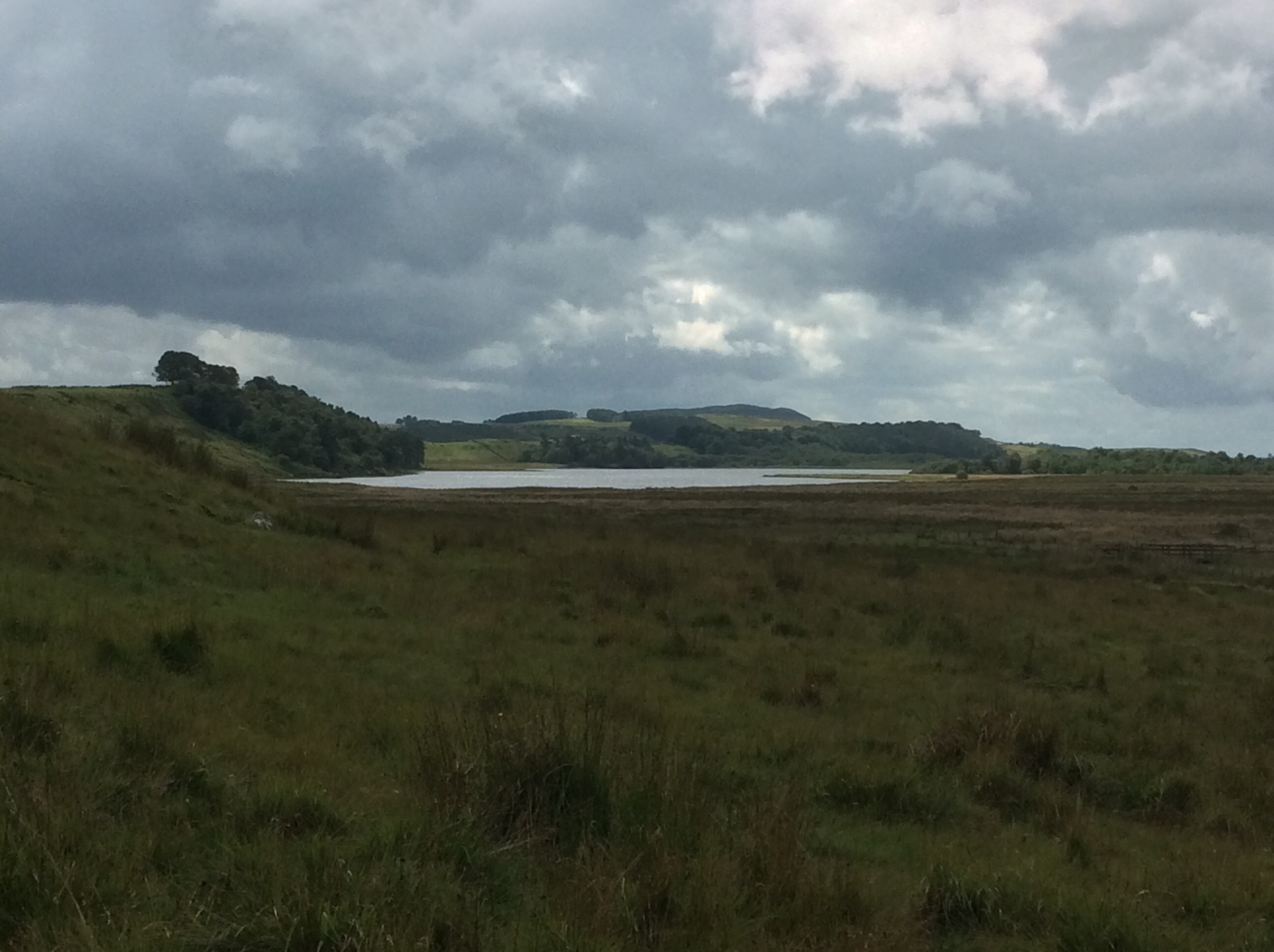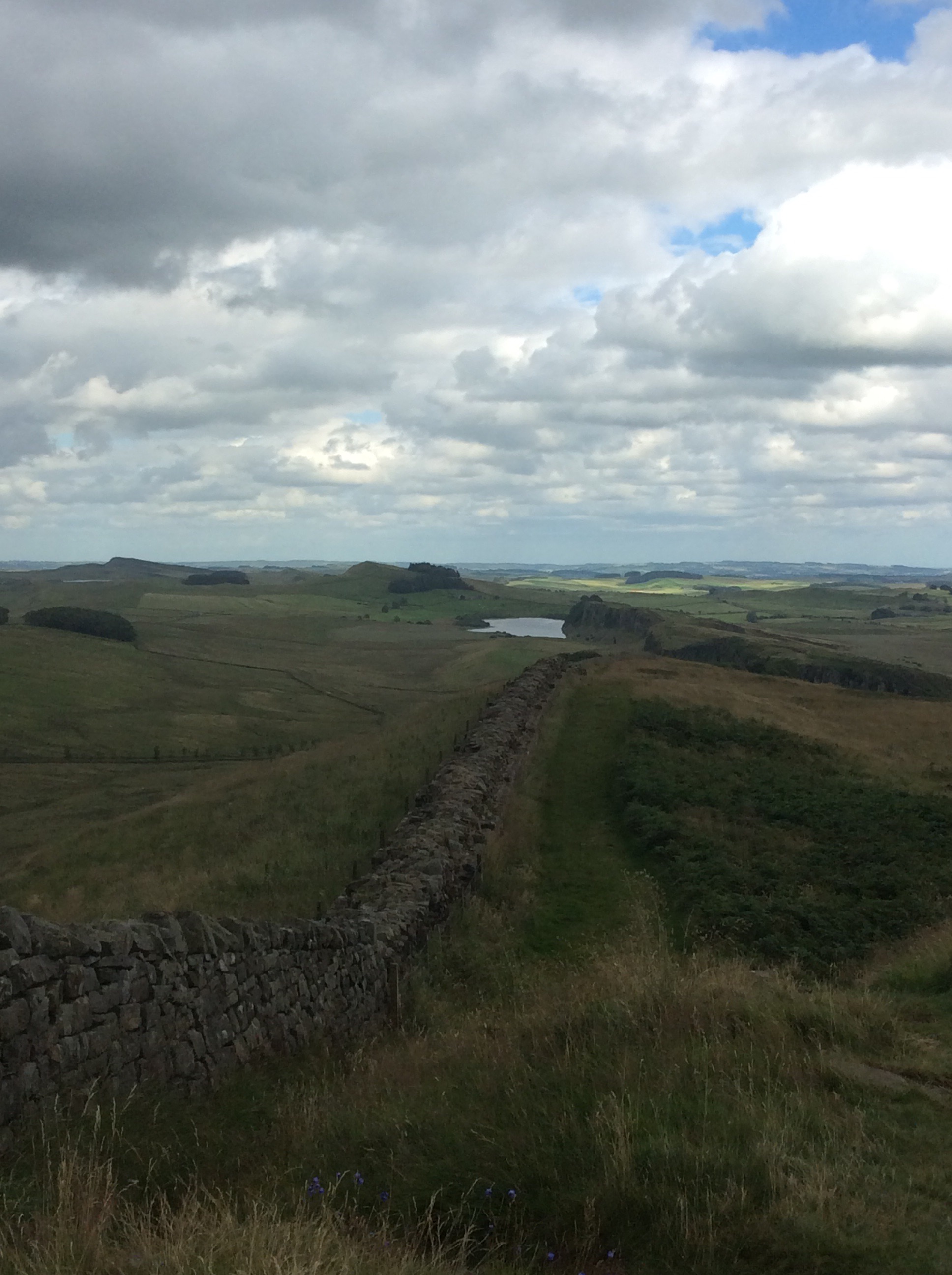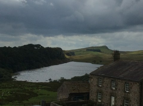 After hours of slog, with wet feet becoming blistersome, the lake below Hadrian’s Wall came into view.