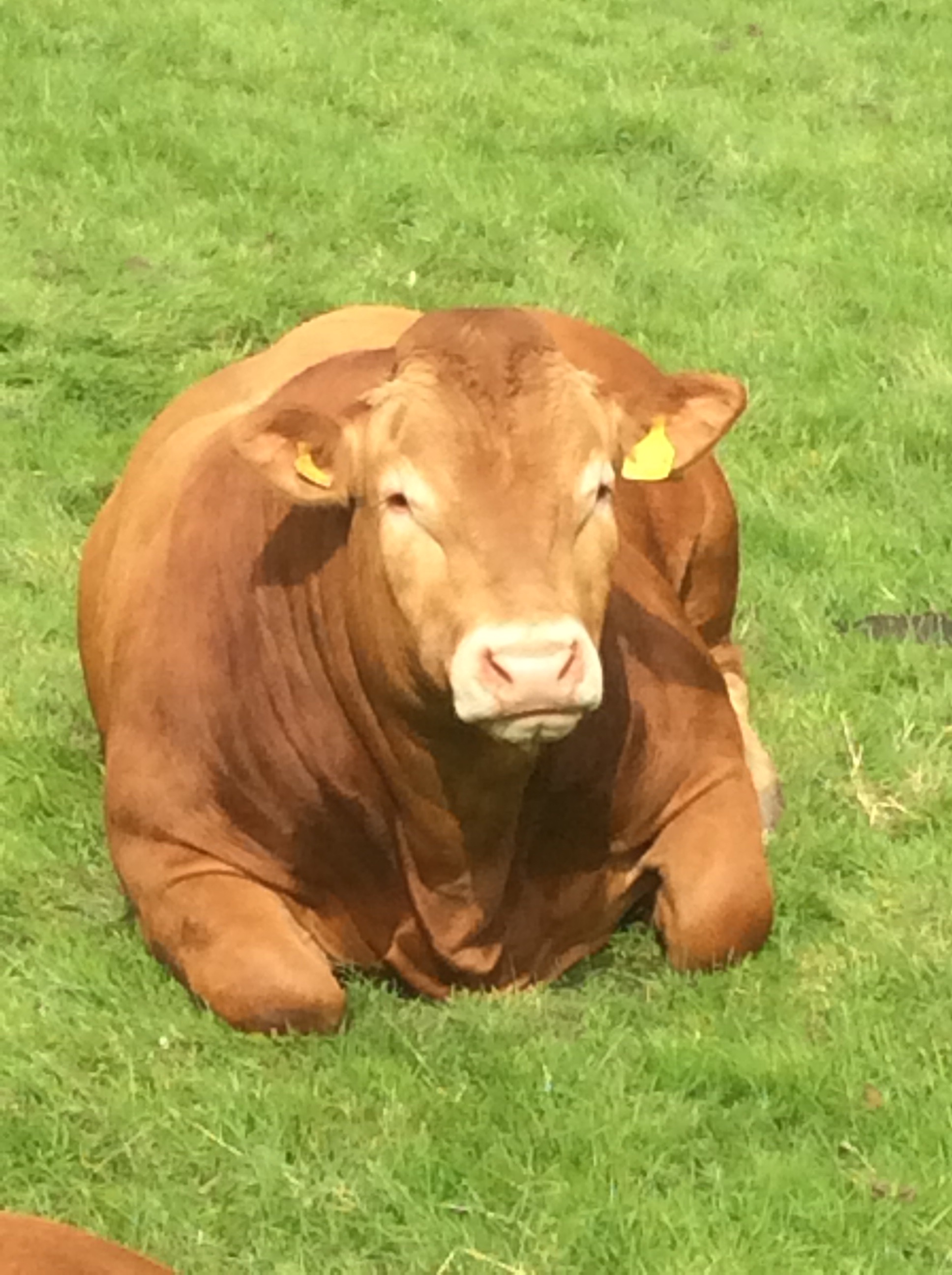 This is cattle and sheep farming land. Sheep in the higher pastures and cattle lower down. I spotted a bull, alone in a huge field, which the Way passed through. On the other side of the wall were cows and calves. I jumped over the wall to avoid the bull and the farmer came over a hill on his quad bike and spotted me. He drove over and I said that I’d jumped over because his bull scared me. He said ‘It’s a cow, and the bull is over here with his cows.’ I felt a bit foolish. But this is what happened to the last bloke who wasn’t careful with cattle.
