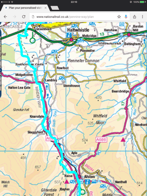 Tonight was a B&B called Highfield, run by Celia and Catherine. Celia is the elderly matriarch who was a member of the Northumberland Climbing Club and met her husband there. His ice axe is mounted on the wall. Serious climbers. Now she is a lovely old lady who greeted me with tea and warm scones. Delightful. I showered and hobbled down to the Victoria Inn, where the chefs are two Muslim Bangladeshi lads, had a couple of beers and a Special Jal Frezi. One of the best curries I’ve had in my life. These lads come up to Alston every day from Newcastle to cook in the Victoria and go back each night. Dressed in their normal Bangladeshi gear they look incongruous in Alston but everyone in the village loves them. England is…… alive and well and living in the South Tyne valley. I limped so badly back to the B&B that a motorist who was driving in the opposite direction stopped and gave me a lift. England is………