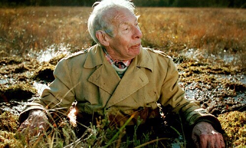 We decided to cut across for the last few hundred yards from a massive liquid bog area to a road that had appeared to our left. Getting there Chip slipped into a boggy ditch and pitched backwards with the rucksack on his back. He was stuck and I didn’t get a picture. Bugger! But if I had done it would be like this.