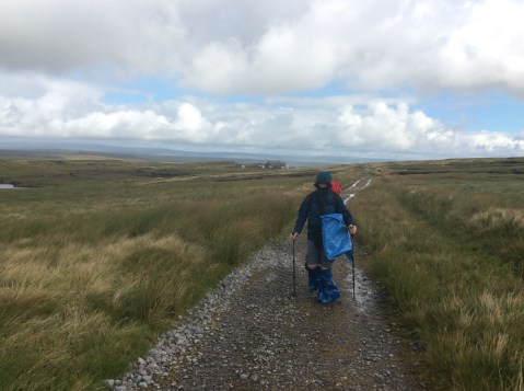When we turned up waterlogged and muddied at the Inn last night and asked if they had a room, it was over an hour before the woman locked behind the computer could confirm it. The queue was deep at the bar and only one woman was serving. Five others were hovering behind the bar doing nothing, and unsure if that was right. It was the most disorganised outfit ever. The highest pub in the U.K. and the lowest level of customer service. Chip went to pay with his card and the woman said she hoped there wasn’t an ‘f’ in his name or post code as the ‘f’ key didn’t work. She seemed terrified of Fletcher and reduced him to Letcher. Dirty old get. Anyway a good night sleep was had by all.