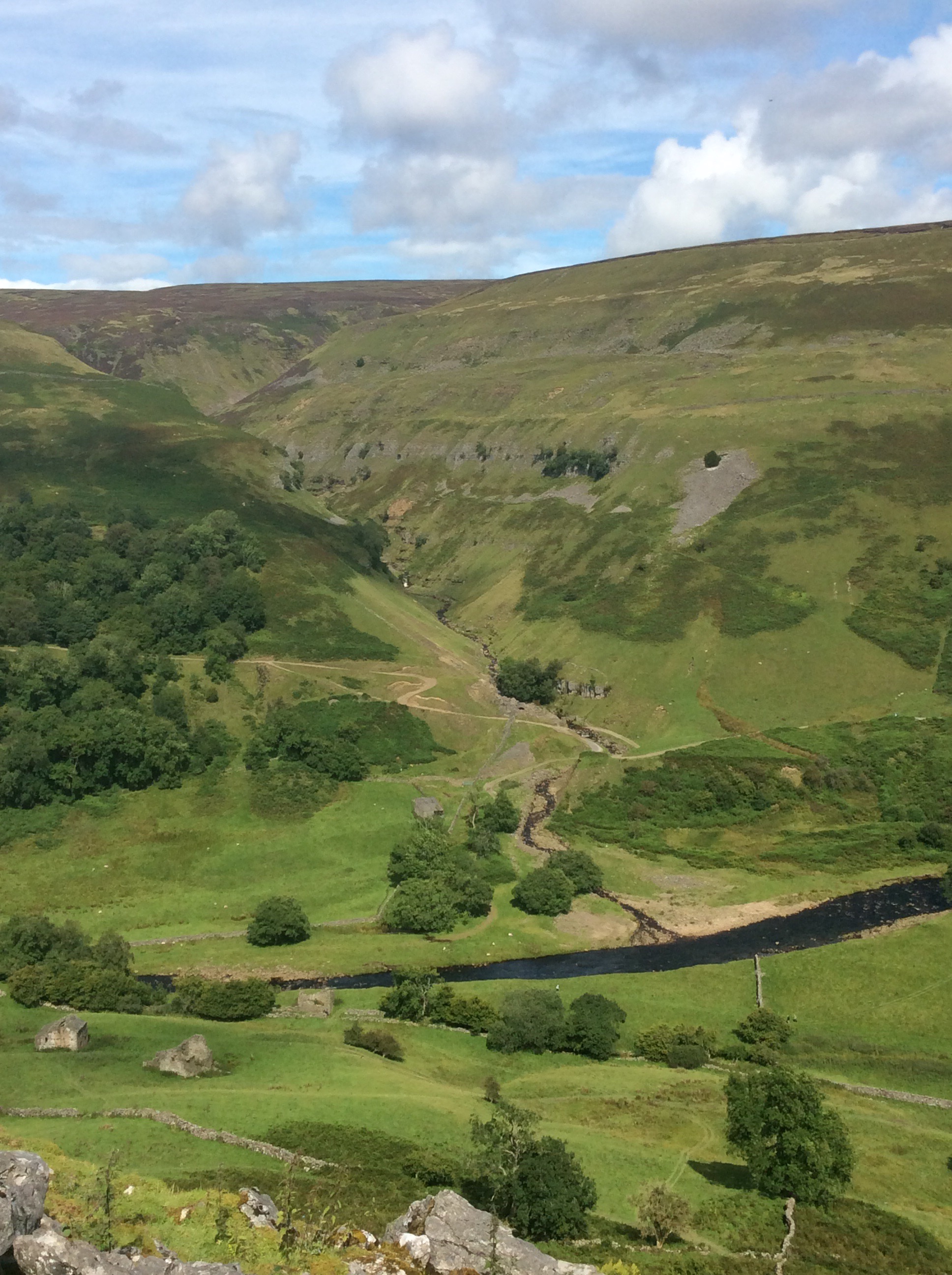 We had coffee and snacks in Keld and set off refreshed on the route to Muker, the River Swale snaking in the valley below. With streams running down from the tops and cutting deep valleys on the far side.