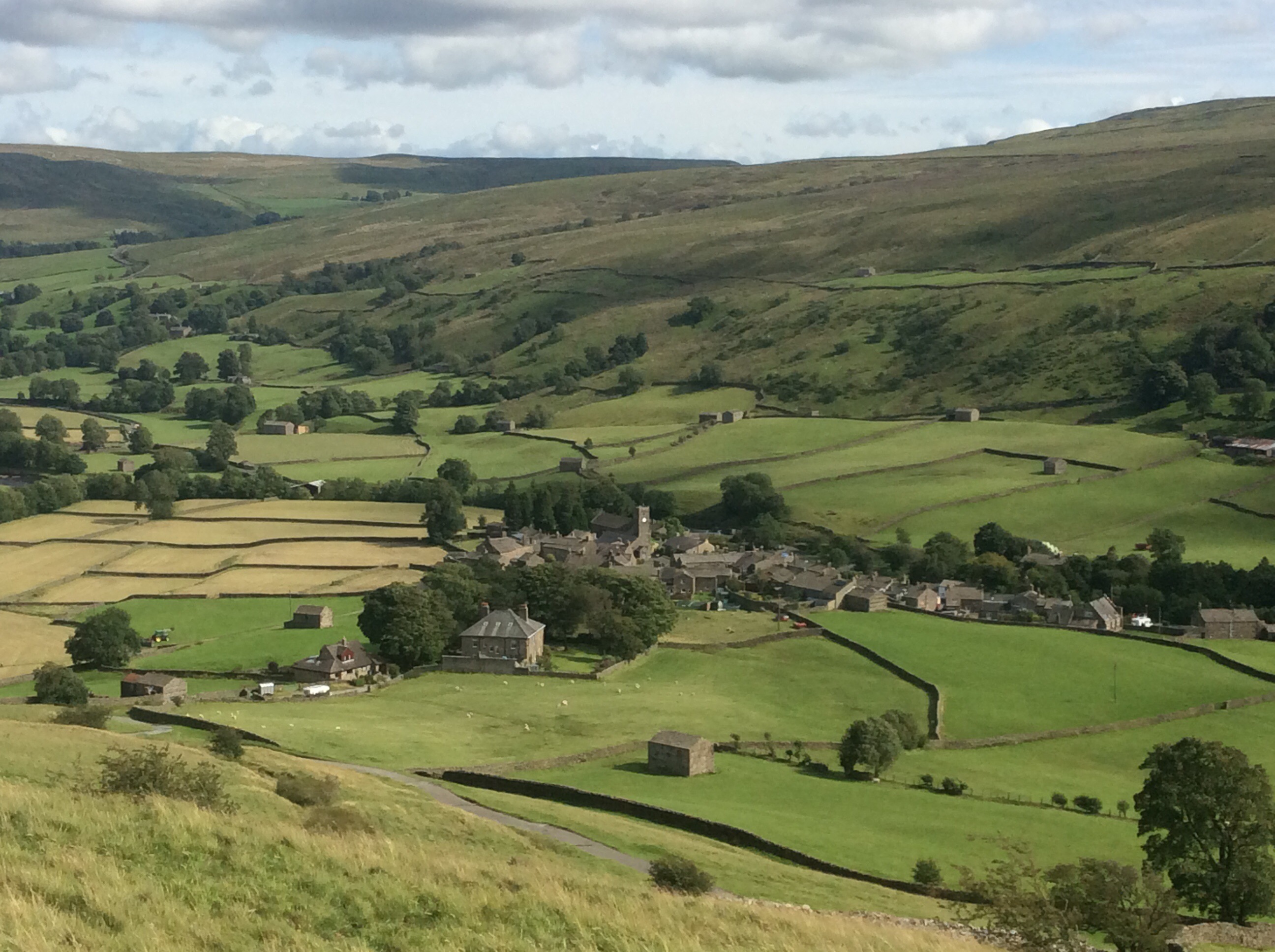 We dropped down the hillside to Muker, a mile off the Way, nestling in the valley.