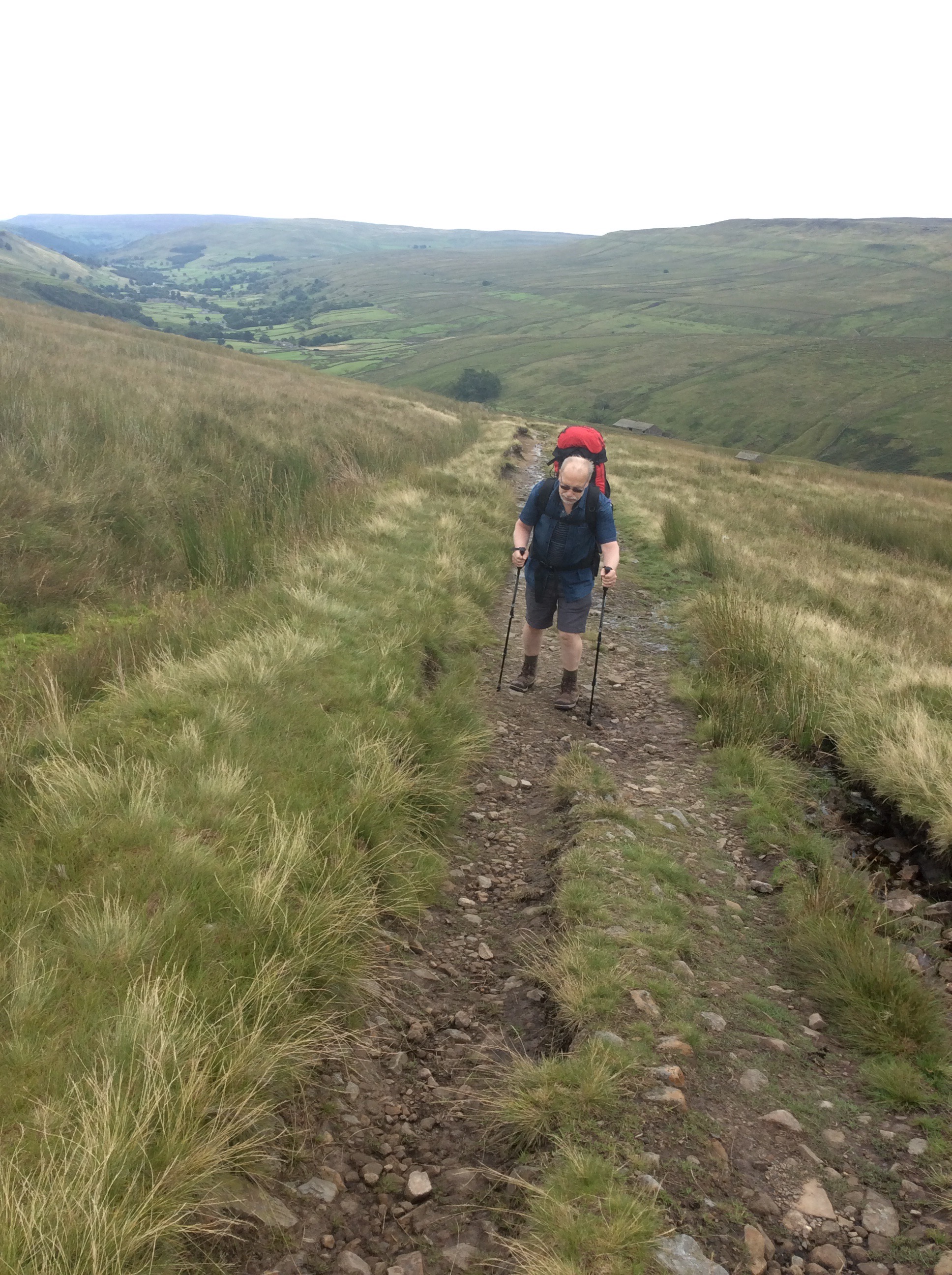 The Pennine Way splits, with one leg taking in Bowes before rejoining the main path. The Bowes Loop rises uphill southward to link in with the main path en route to Tan Hill. Our afternoon stretch would take us 11 miles to the Tan Hill Inn, where we would pitch our tents this evening. It’s a pleasant walk and we linked up in good time with the main path.