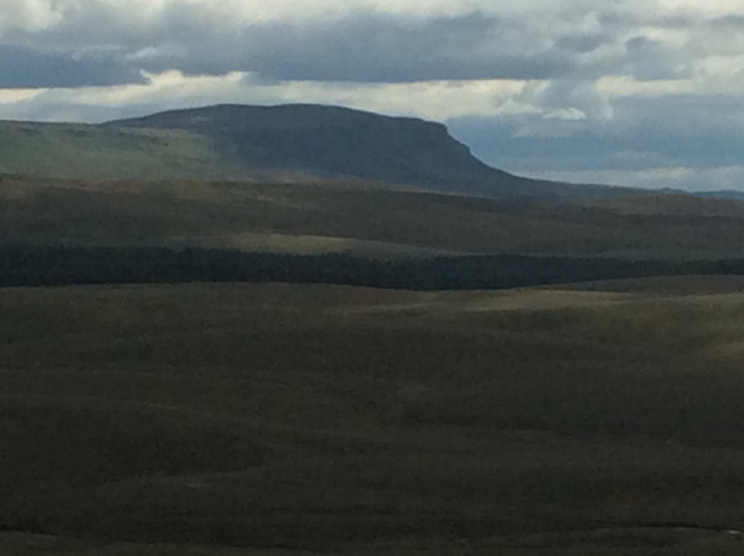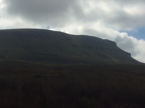 Up, up and away and a first view of Whernside to the right and the stately pile that is Ingleborough to the left. Two of the 3 Peaks.