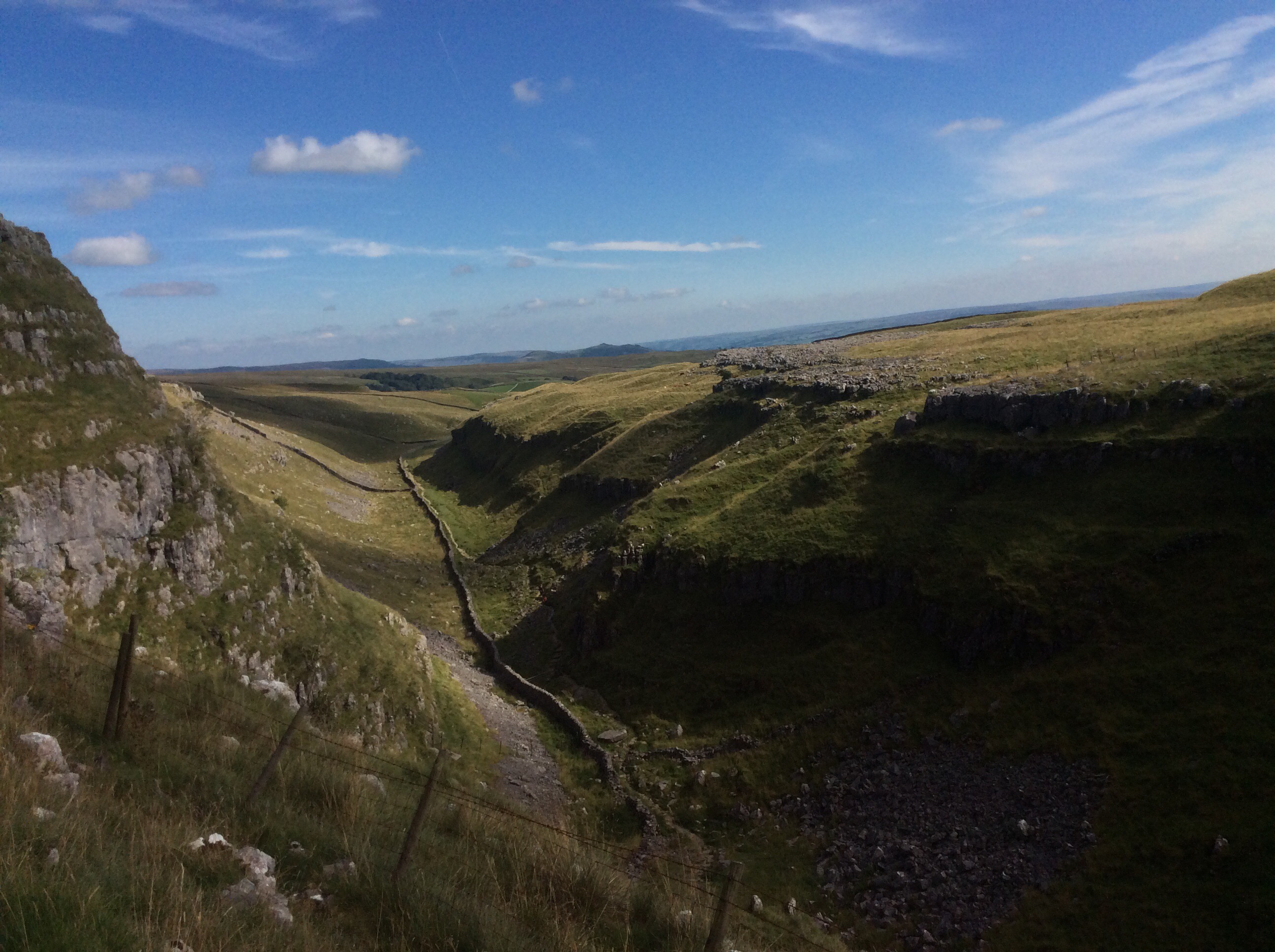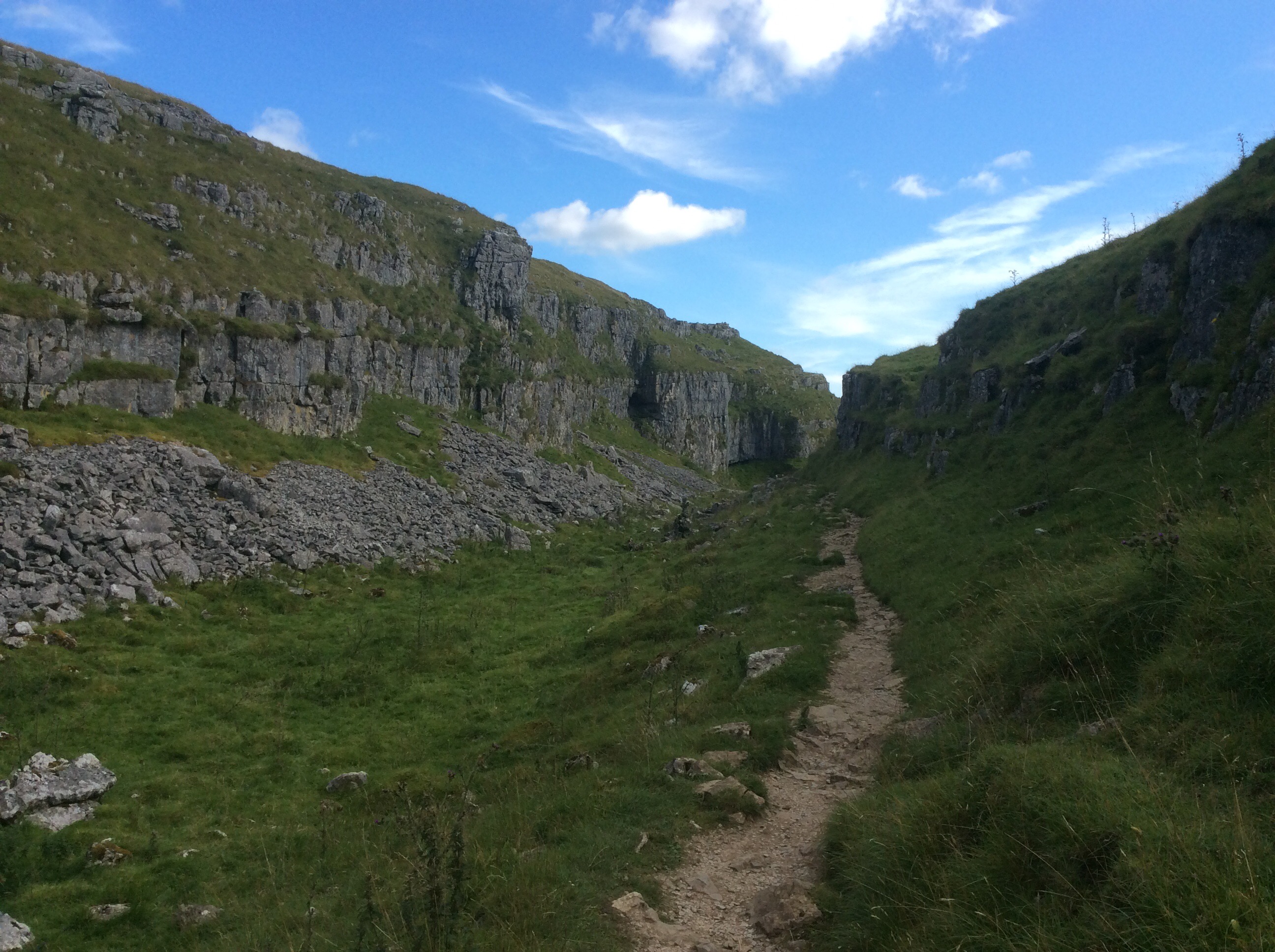 Eventually leading out onto the top of Malham Cove, an amazing crescent shaped cliff over which a stream fell for the first time in living memory during heavy rains earlier this year.
