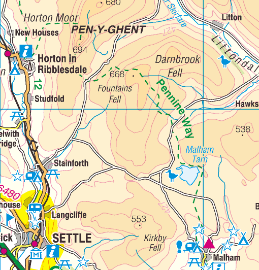 The route today is fifteen miles, climbing up Pen y Ghent and dropping down to climb up Fountains Fell and on to Malham to meet my sister Debs at a campsite.