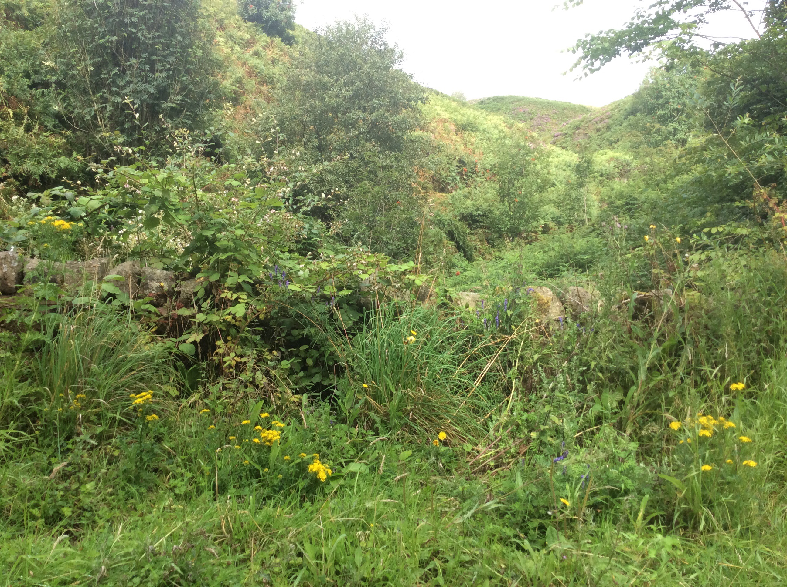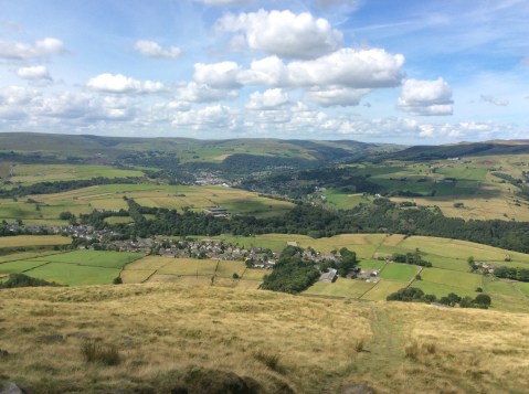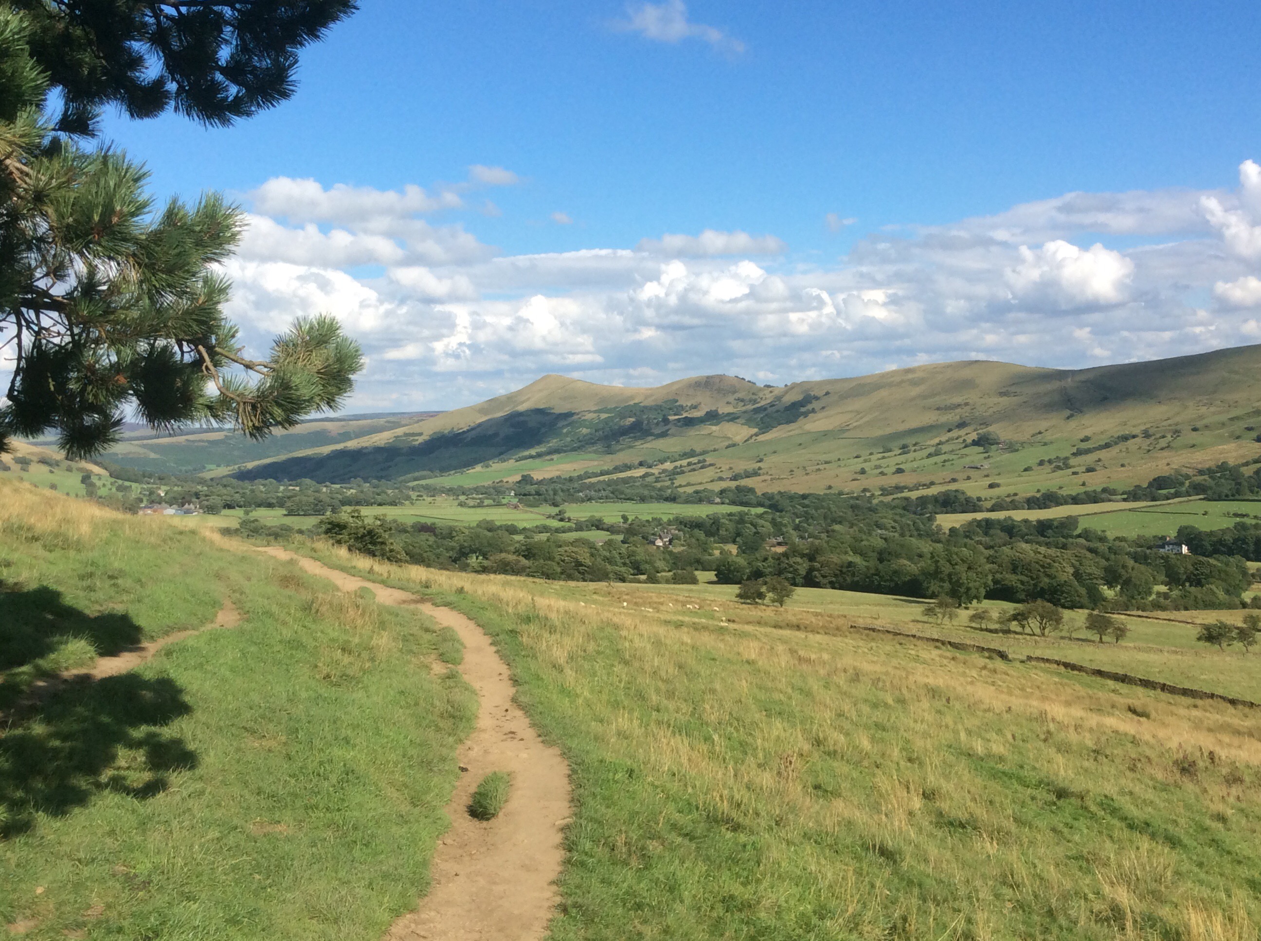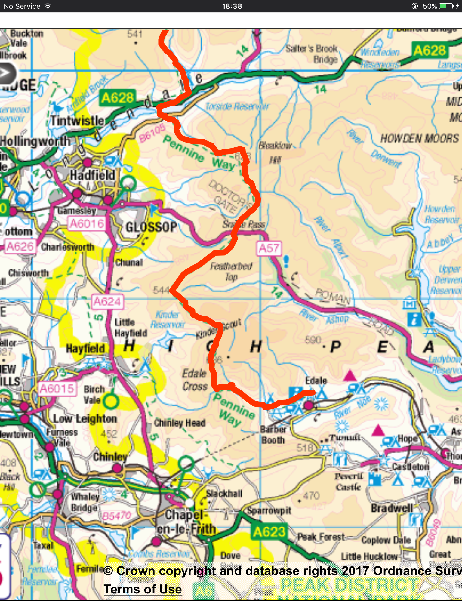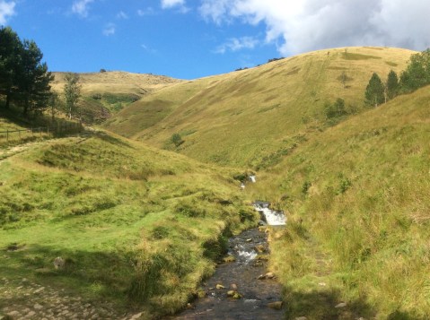 The Way drops steeply down Jacob’s Ladder and gives views back up to the ridge around the Kinder Scout plateau. God I love this country. It’s part of my fabric. My mum’s ashes are a few miles away in the Peak District and she’ll be happy to rest there. She deserves it, after living with that arsehole for so long.