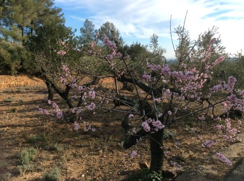 This morning we set off late, just after 10am, and aimed to cover 18 miles, mostly uphill and off-road, in the warm and, at its zenith, hot sun. The cherry blossom was already out and we picked up free oranges which were ripe on the trees by the side of the road. Sweet and juicy.