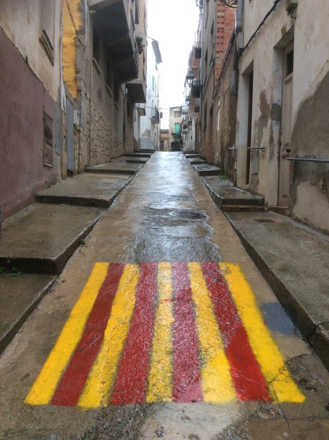 This region is part of Catalonia and there is a strong independance feel in the villages and cities. Flags everywhere and some people will only speak Catalan. Nobody speaks English but we get through on my poor Spanish.