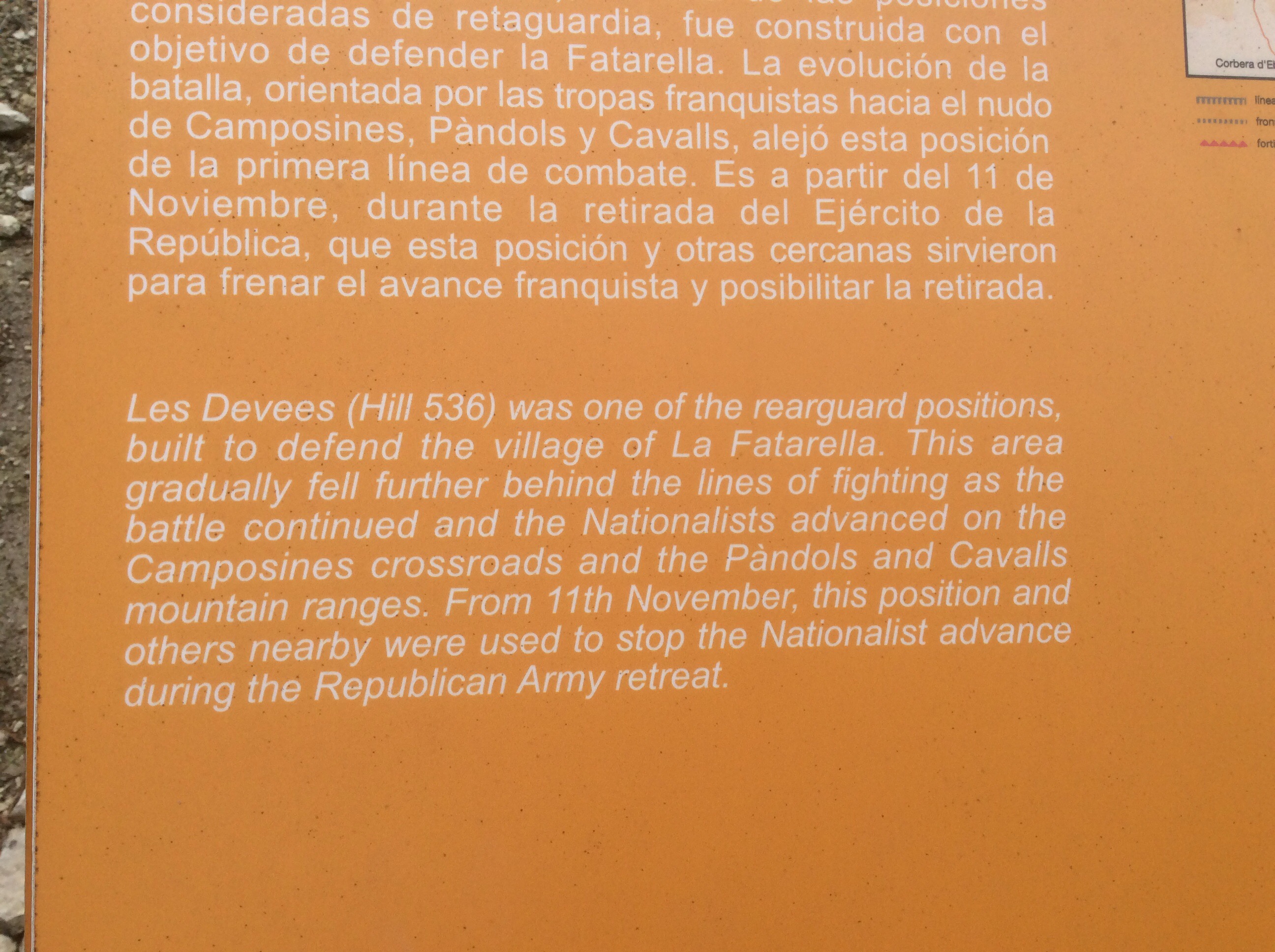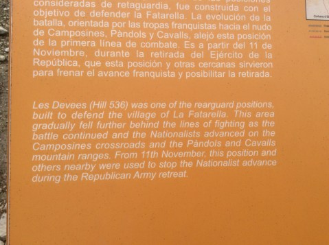 But getting to the top we saw a sign to a landmark of the civil war. This was something we couldn’t ignore. The trenches and shelter from attacks and bombing by the Nationalists and Nazis to provide a last defence for La Fatarella.