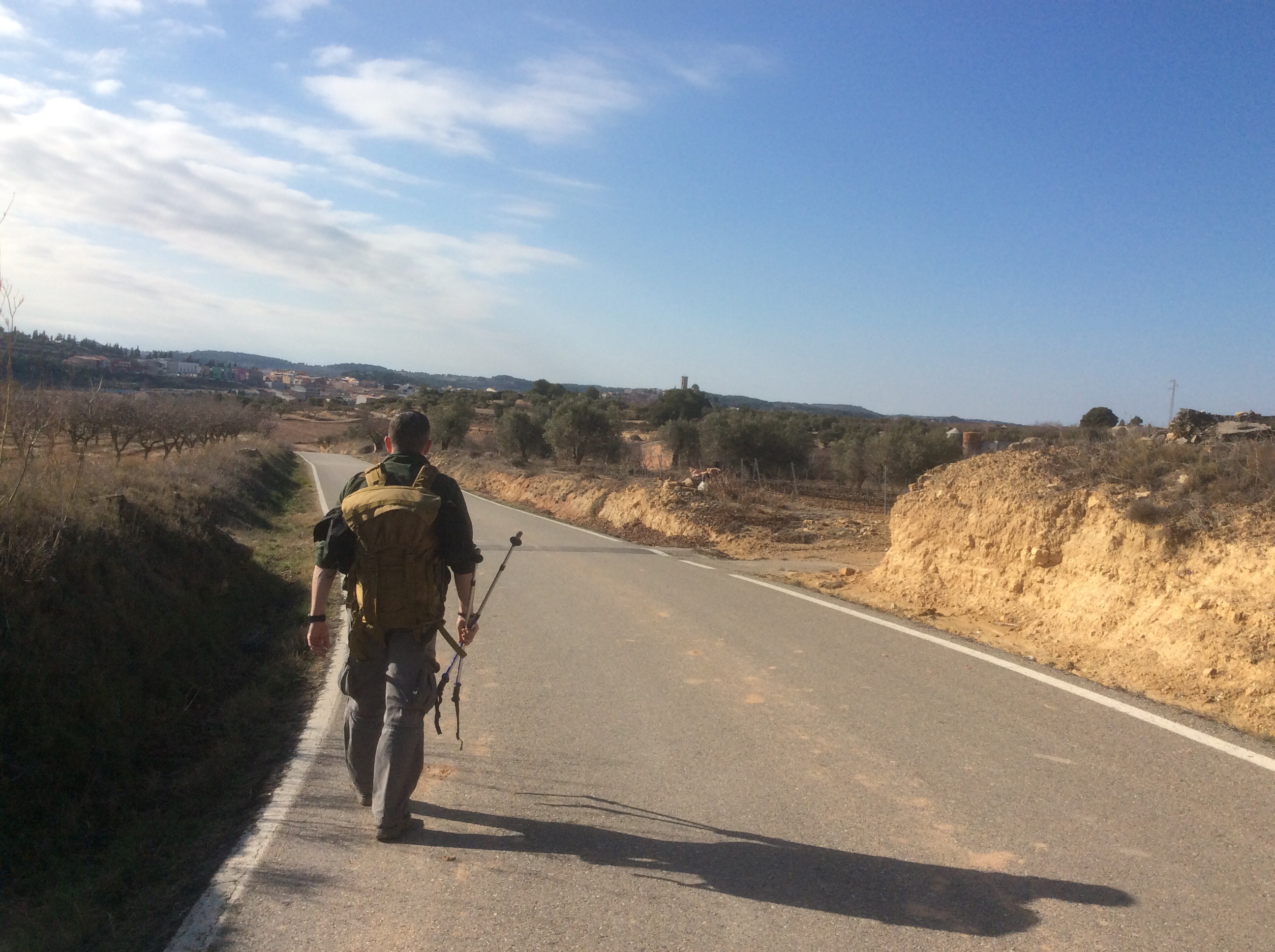 We eventually found the road, after being told we were on private land, but a smile and three or four Spanish words usually cut the ice. We made good time, marching under the warm sun to Batea. The road was empty.