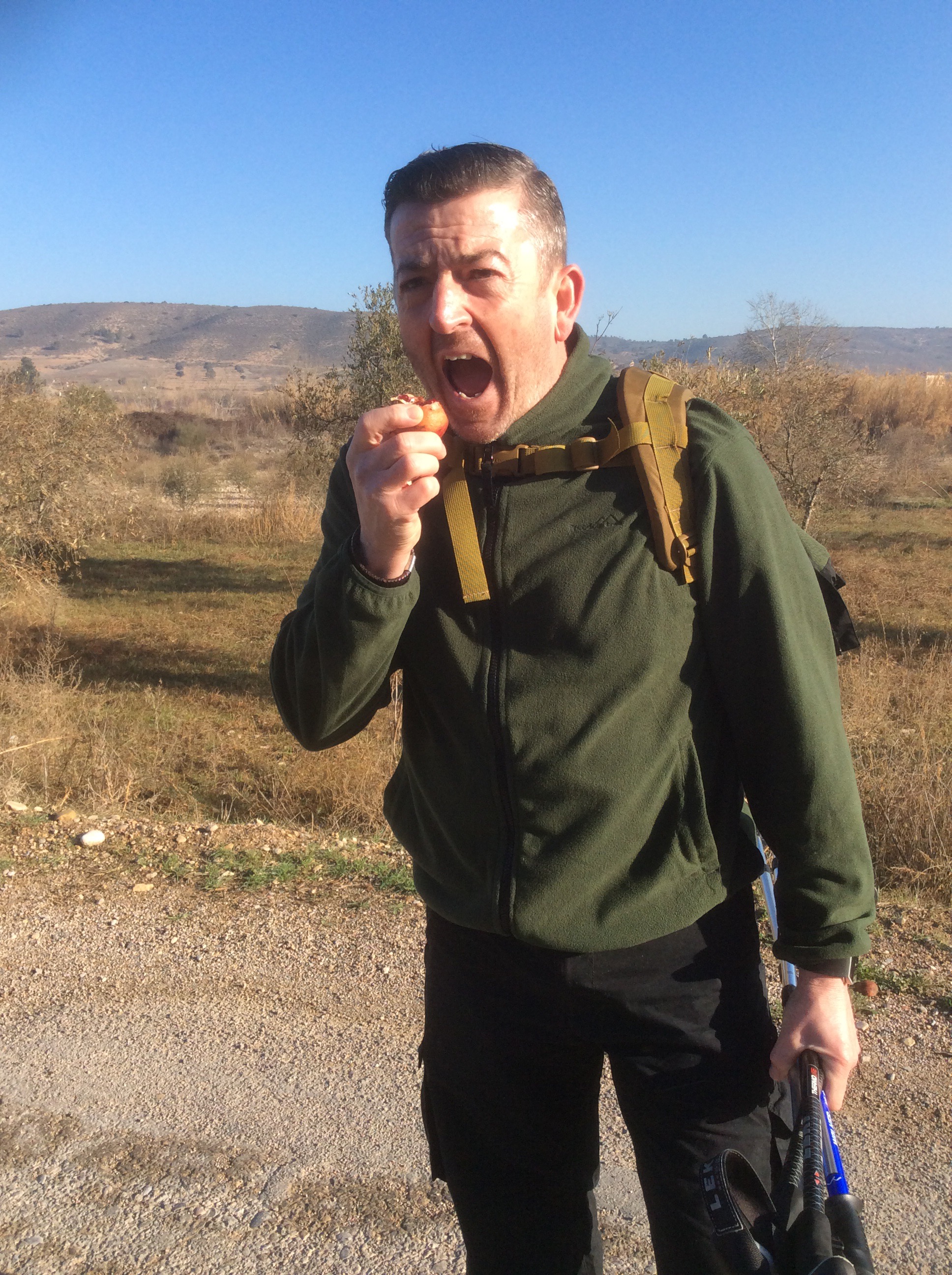 I’m not as fit as I was before my fall but I kept going today as well as I could in an uphill struggle. Gazza done good yet again. Focused and determined. We reached the summit of the first range, dropped down to the valley floor and looked for the footpath to take us over the next mountains. It wasn’t there! The footpath was so overgrown we couldn’t find it. Instead we had to wind our way around the valleys for a couple of miles to get to where we should have been an hour earlier. The land was rich and beautiful though, with almond trees, olives, vines and hazlenuts.