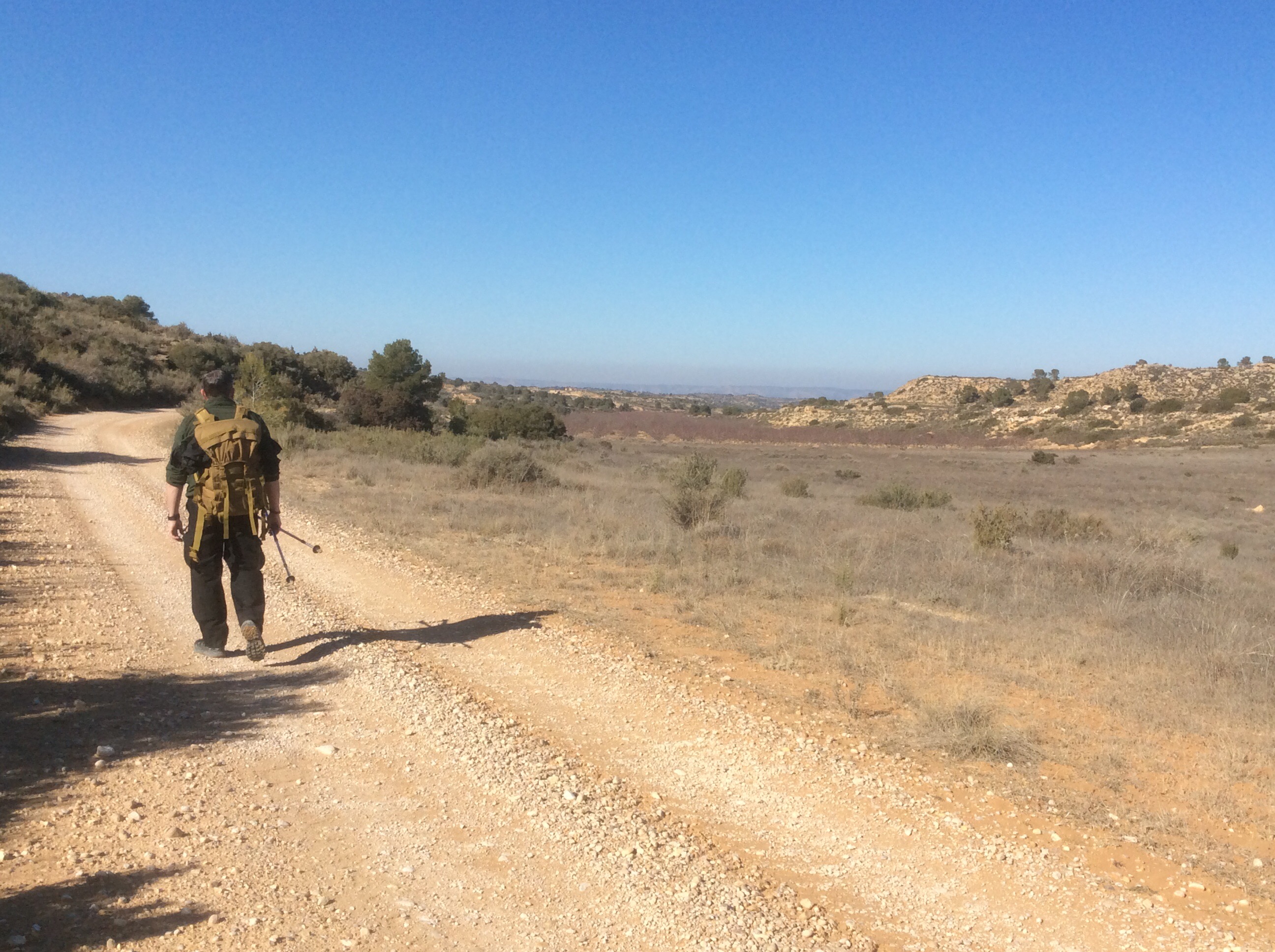 It got warm and we slowed a little but we were doing 20 miles today and not 27 so we were ok with it. The frustrating bit is that the Spanish don’t have Ordnance survey maps so we were navigating on google earth hard copy photos. There are no roads for tens of miles at the moment, but that will change when we walk in the Ebro valley.
