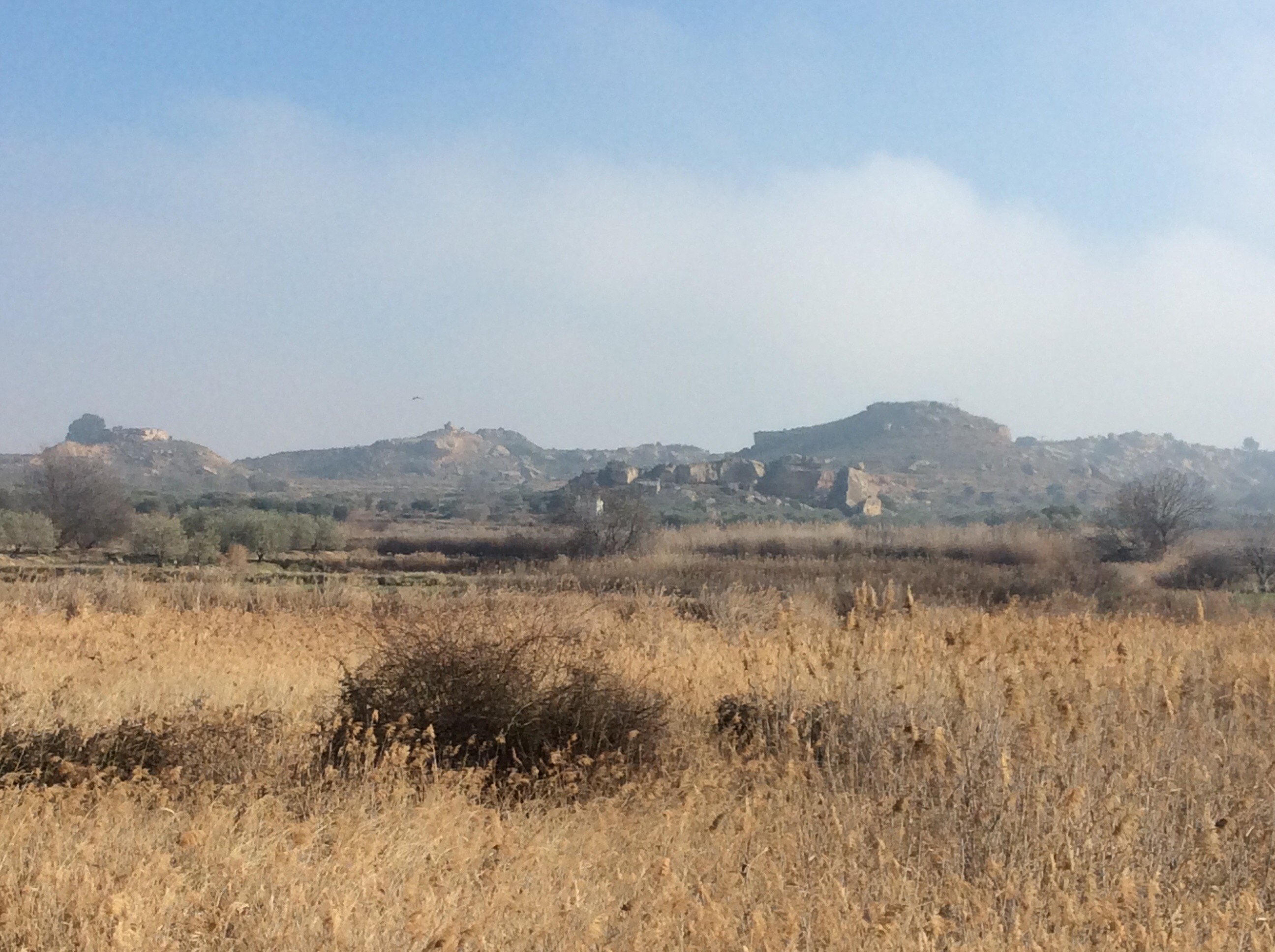 Even at 2pm the temperature frosted our breath, but then the plain warmed up and we peeled off gloves, hats, scarves and top coats. It’s not great walking on the road but the views are still worth a look, left and right.