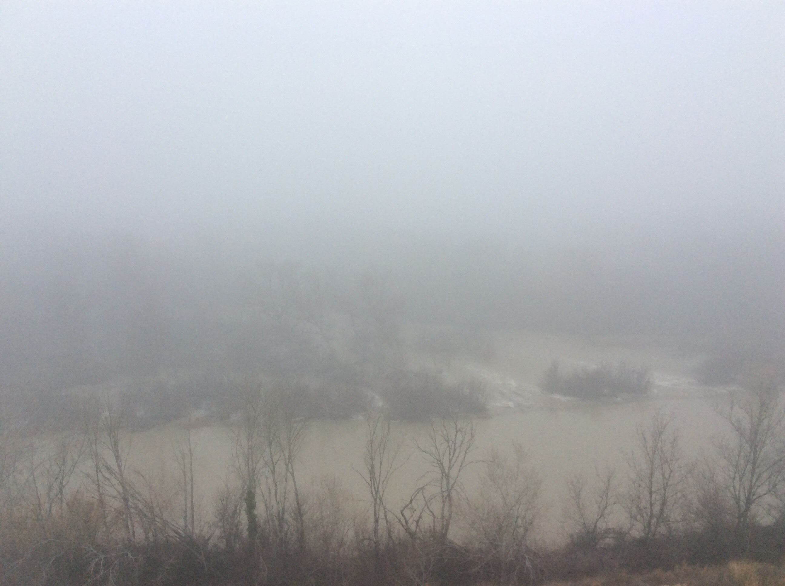 We set off at around 10.30, no rush whilst it was freezing, and today we were aiming for Escatron around 16 miles up the valley. The fog slowly cleared at around 1pm.