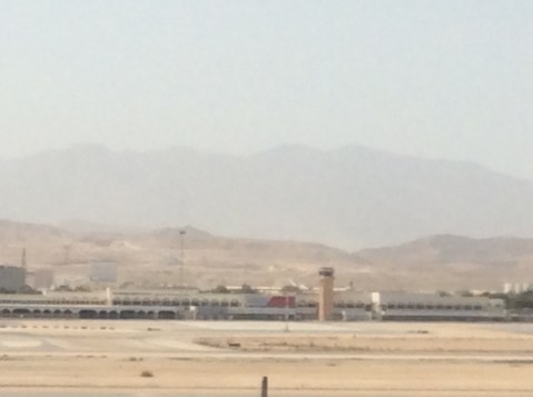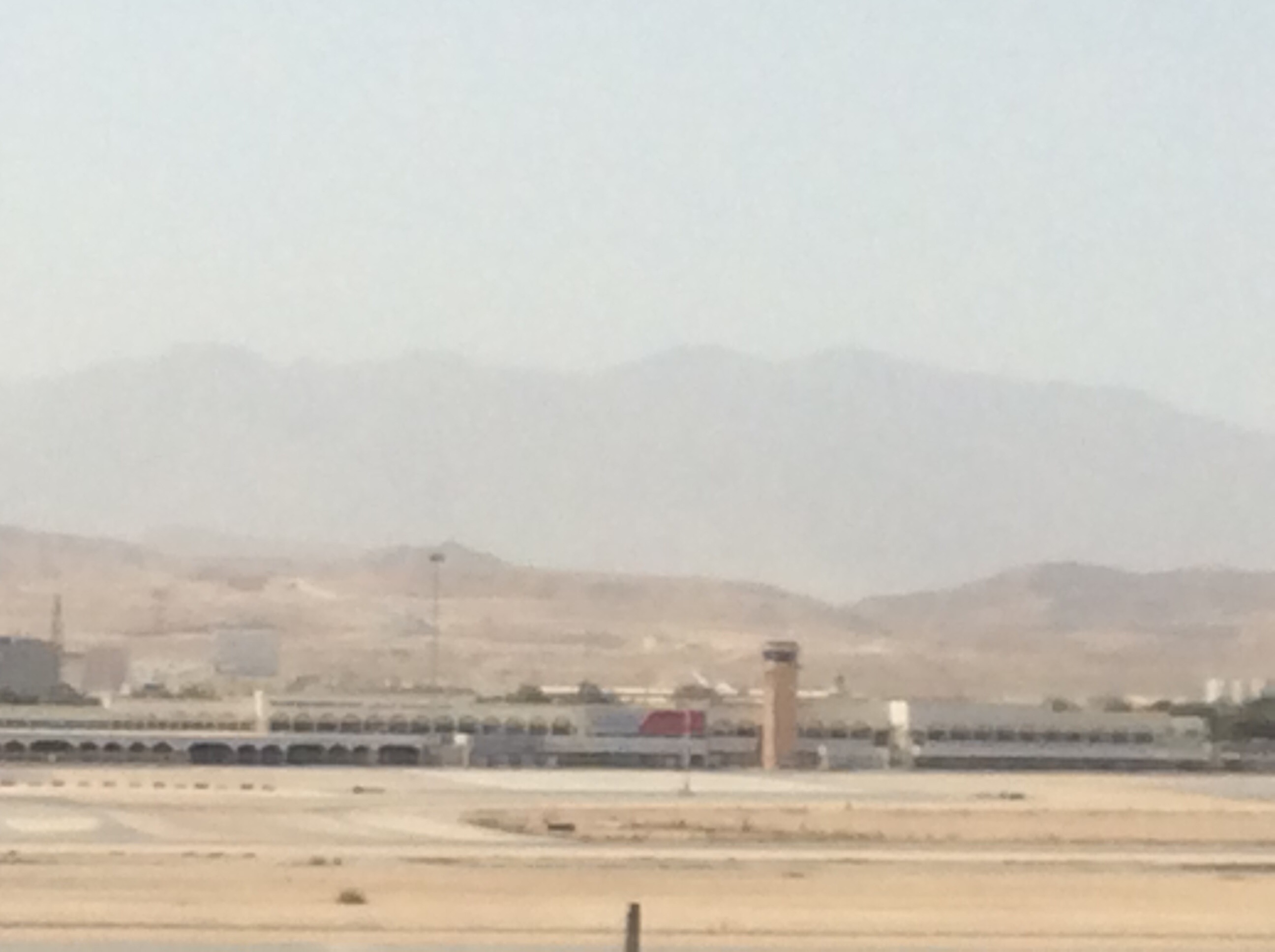 Me and a Jet got visas and left the airport terminal for a while for a short stroll, but it was too hot. At 9am it was not far off 40c in the shade and the sun was a killer. The breeze was like a fan oven, blasting in your face and the mountains a few miles inland were screened by dust and heat.