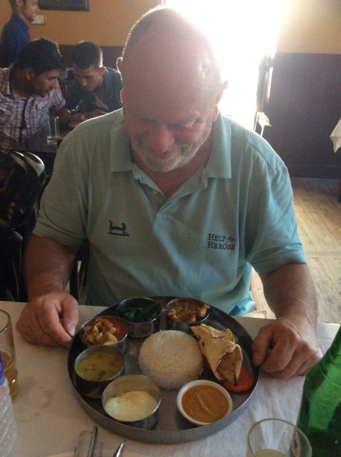 Lunch was outstanding. Vegetable stir fry for Jetty and Dal Bhat for me, with Local beer. For £12. Brilliant.