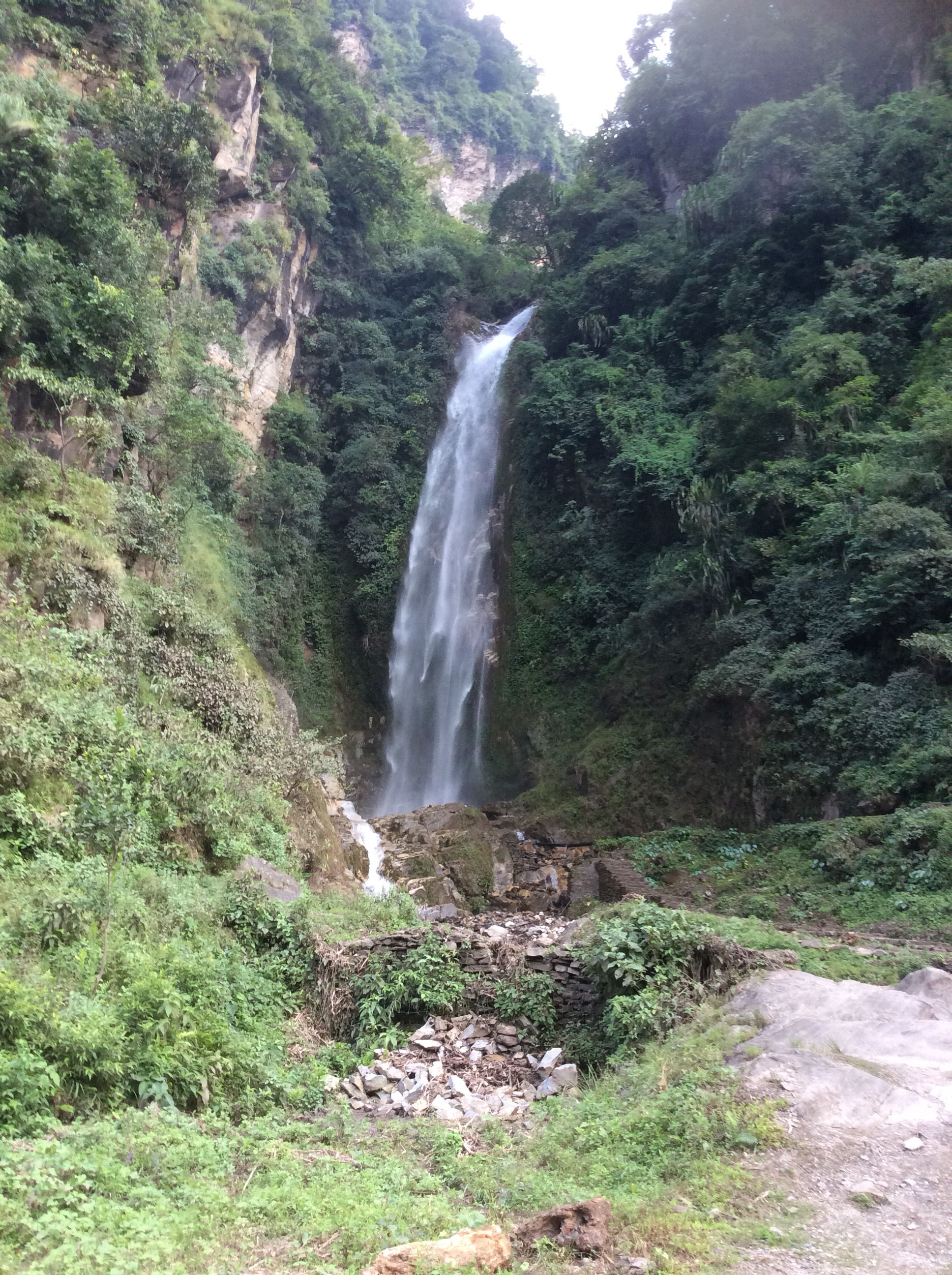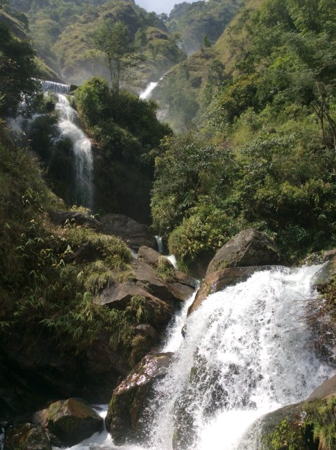 We stopped for a great lunch at a village. These restaurants are not all proper buildings, and these villages have to carry in supplies on their backs through the landslides. Dozens of them. There is only one track and it’s buggered. There was a fantastic waterfall next to the restaurant.