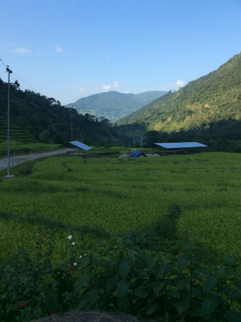 An early morning for me and Jet again, breakfast on the top floor of the teahouse. The sun was coming up behind the mountains and looking up and down the valley, over the rice paddy fields, the views were beautiful, although not as spectacular as in the next few days we’re told.