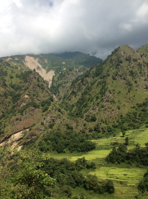 Looking back down the valley we could see where the landslide had cut down the hill.