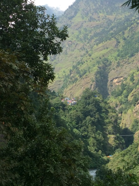 After we’d eaten the track cut higher up the mountain. It was exhausting in the midday heat but eventually the village we were aiming for came in sight. Jagat.