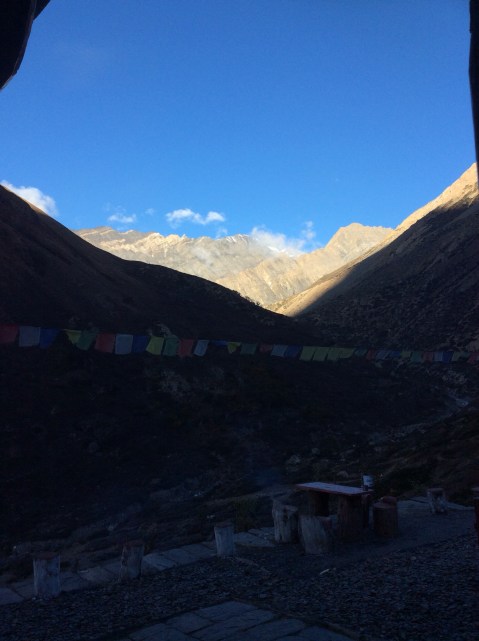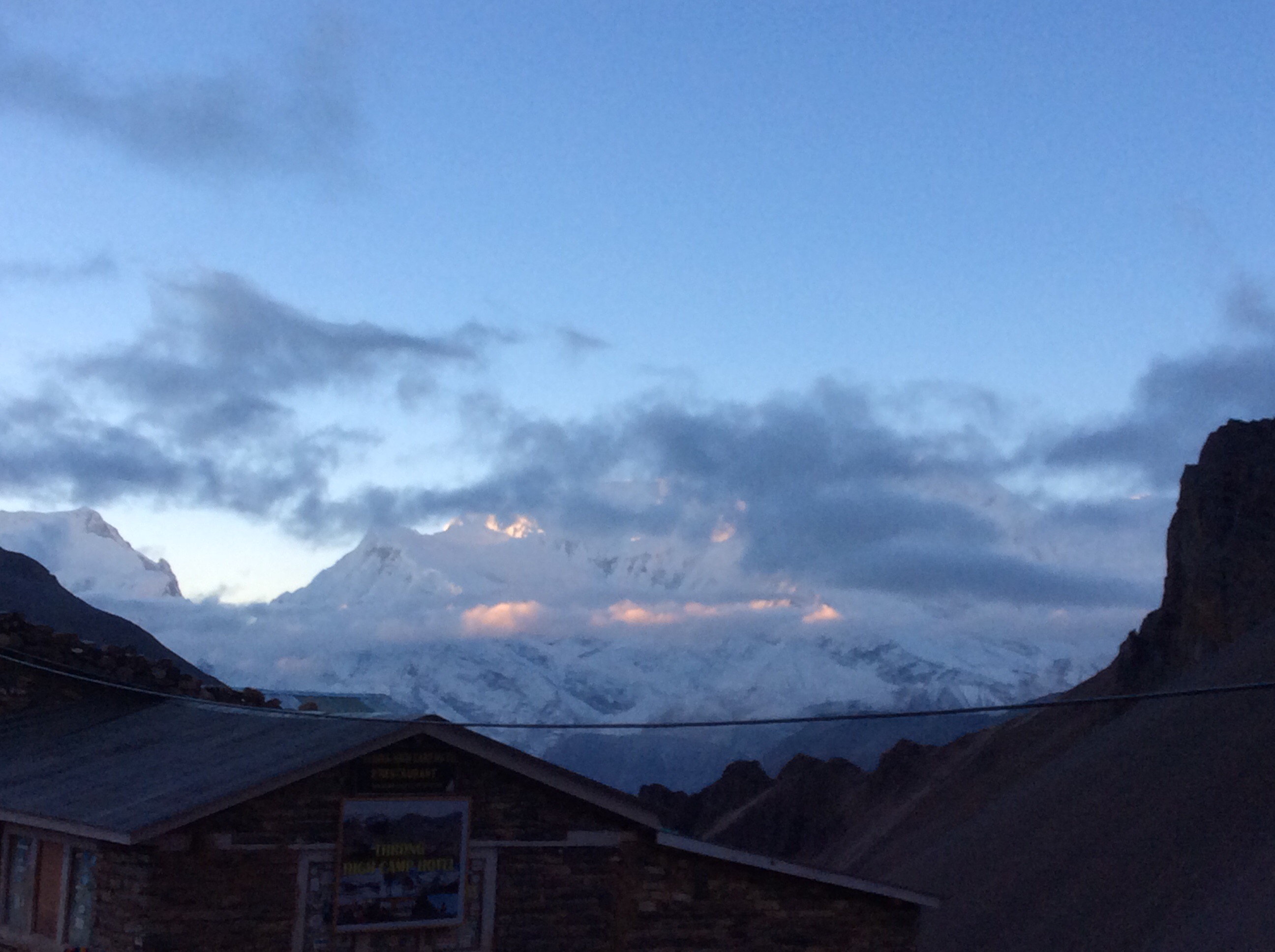 We checked into our next guest house, in Thorung Phedi at 15,000 feet, and had lunch. We’ve got a three thousand foot steep climb tomorrow to the summit of the highest pass in the world and then a long trek down to the next village. It will take us 7 hours to climb up. This is a mega tough day as oxygen makes itself scarce. We will be higher than Everest base camp. But I’ve been off the beer for 6 days as alcohol contributes to catching altitude sickness and tomorrow night we’ll be well down if all goes to plan. We’re setting off at 4.30am and after an 11 hour trek I might have one or two!