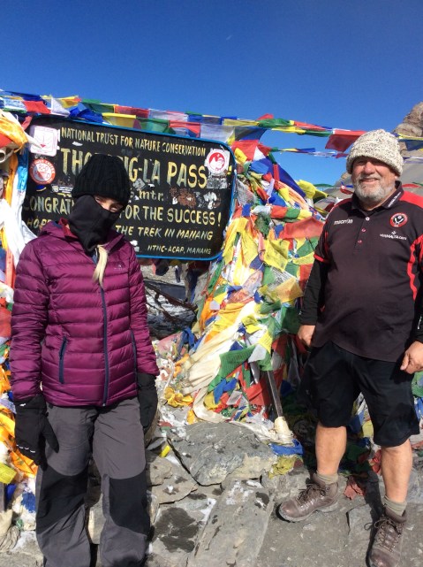 This is the toughest part of the trek and it is a real beast. It’s one you look forward to as it is spectacular, but when the alarm goes at 3.30am and it is very cold outside, you dread it. Knowing that oxygen is disappearing and your guide will only allow 5 minutes at the top in case you succumb to dizziness. Jet already has it! We’ll end up in Muktinath, 5000 feet down in the valley on the other side of the pass. Jet calls it Muckynath.