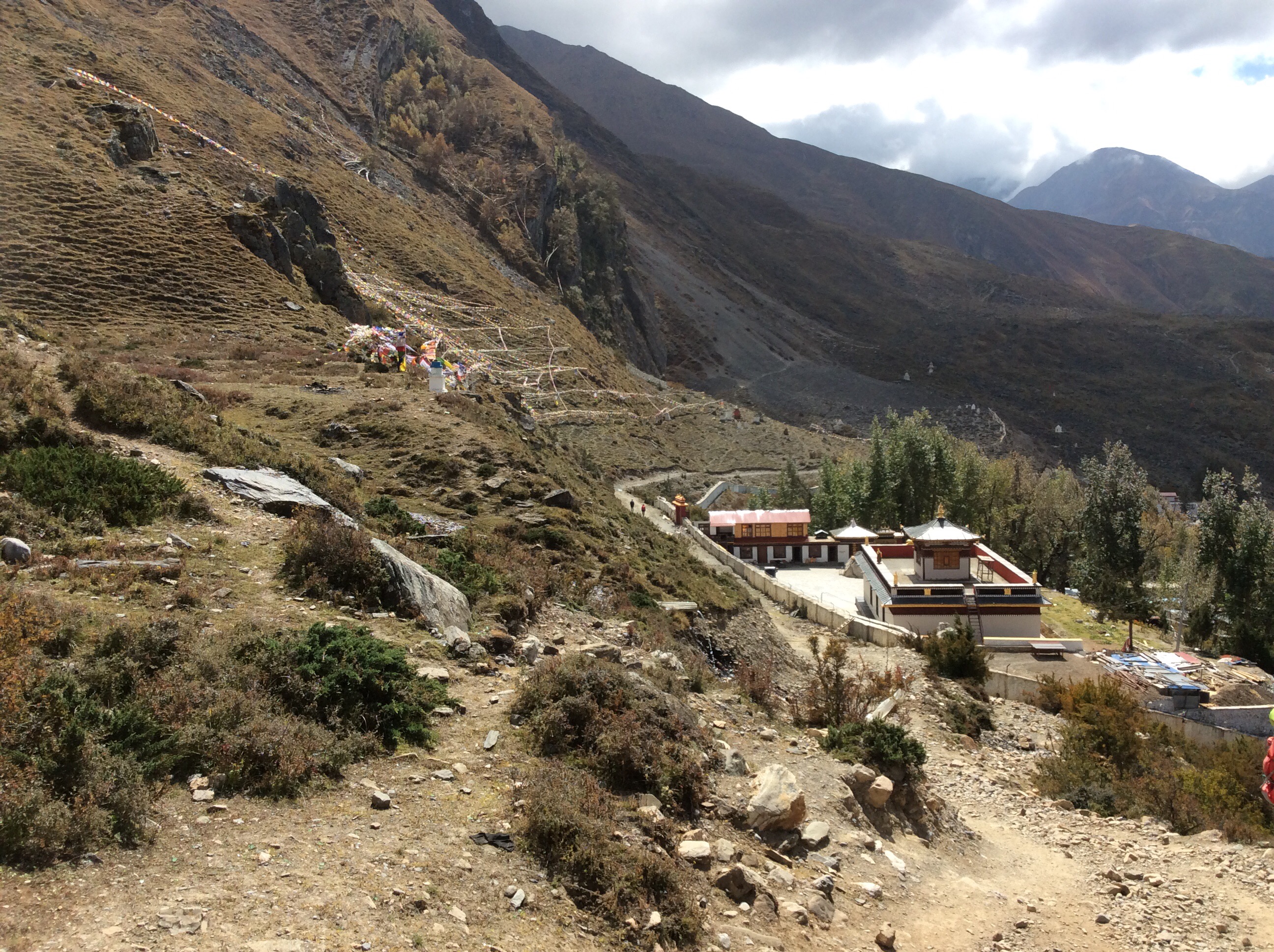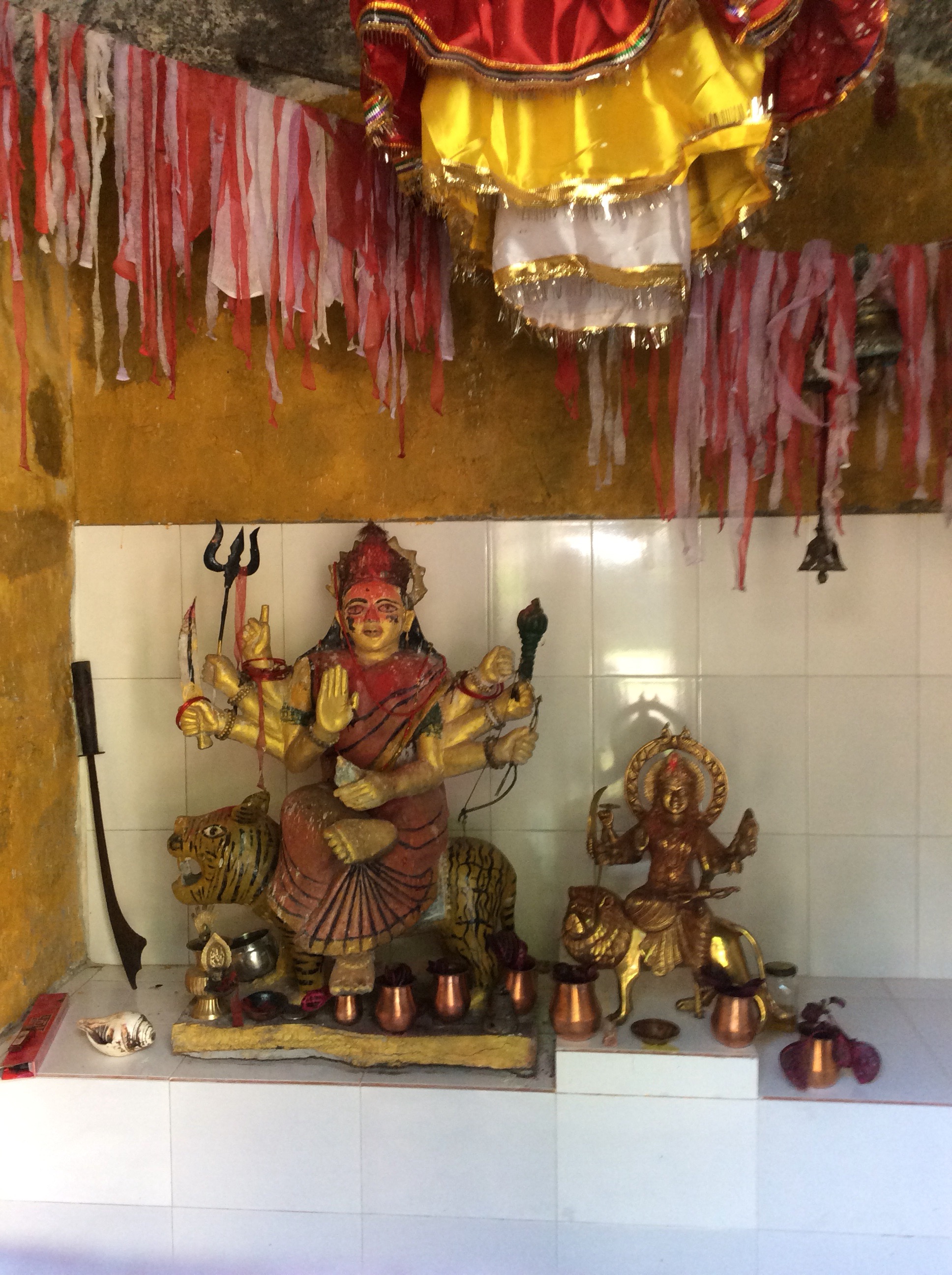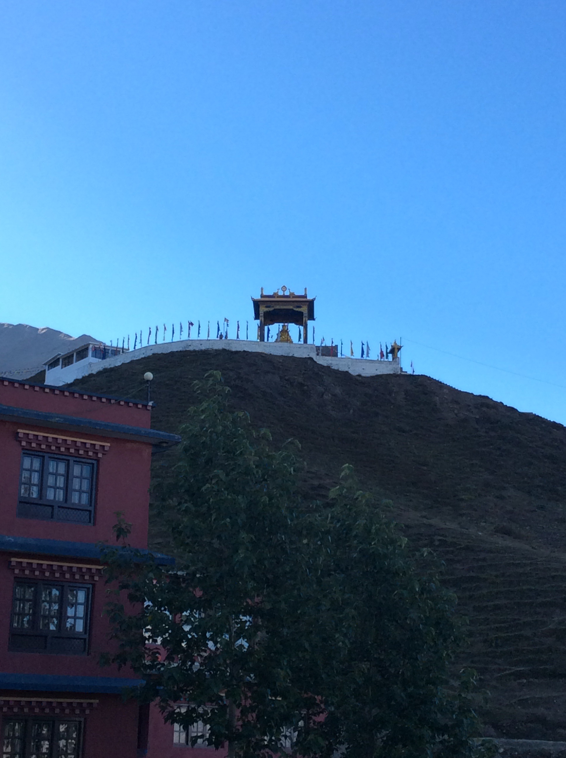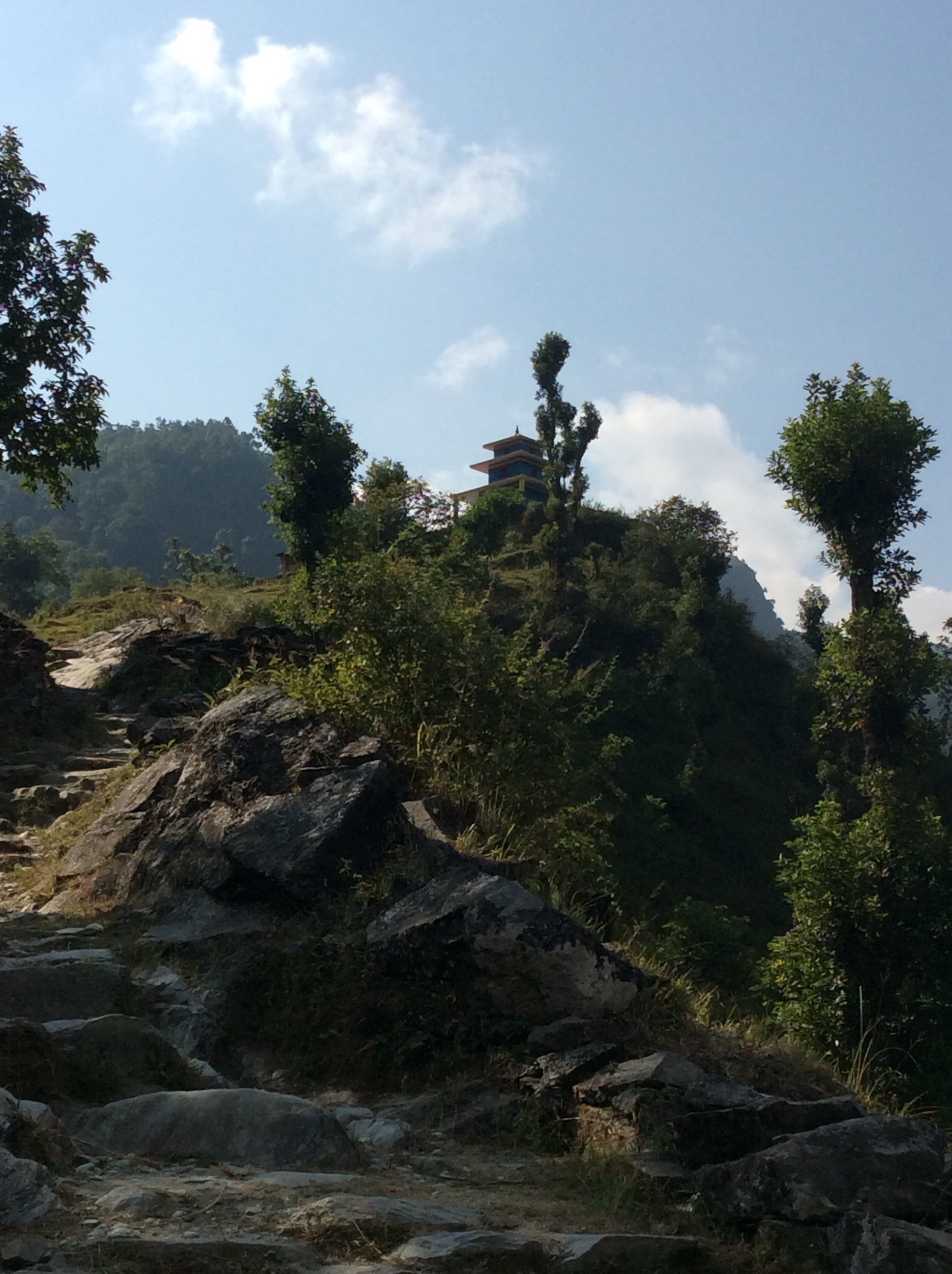Above the village a Buddhist shrine stood out majestically against the blue sky. Odd that this village is a very holy place for Hindus but the locals are all Buddhists.