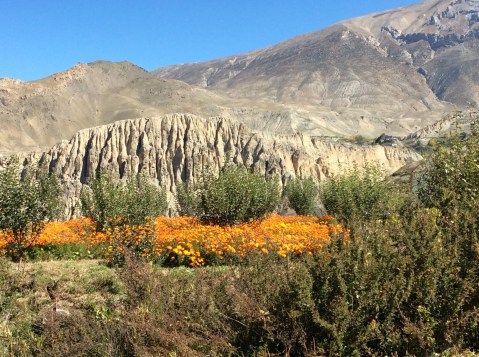 Ever wondered what marigolds look like with apple trees in the Himalayas. Beautiful.