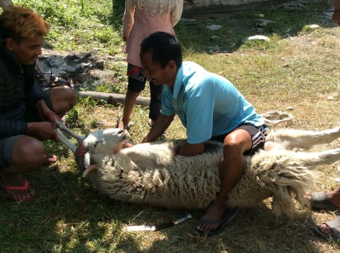 Warning friends, the next paragraph and photograph contain details of the slaughter of a sheep.