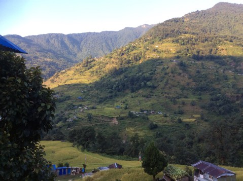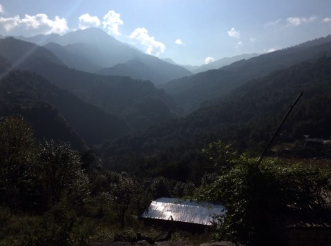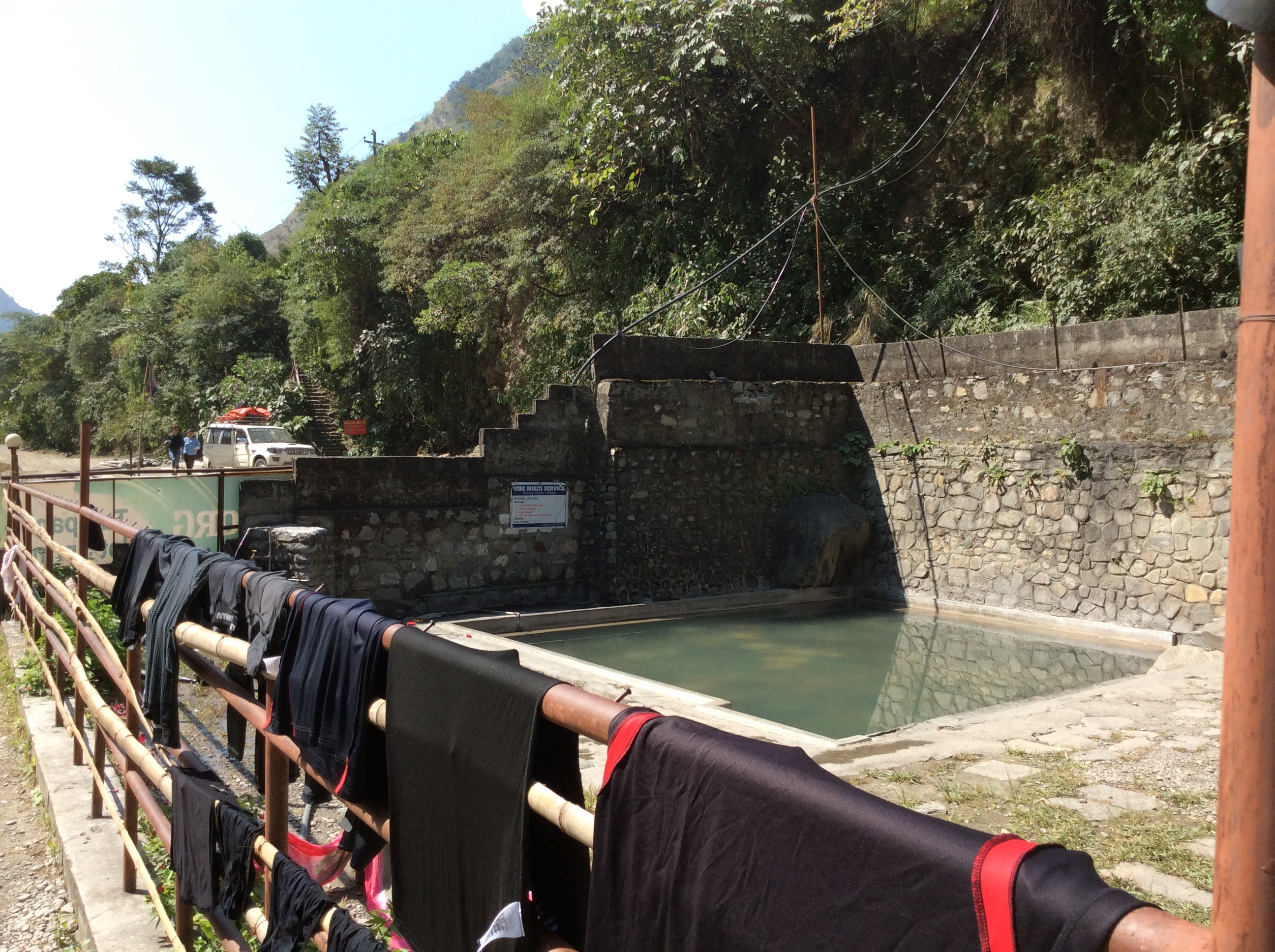 After the trauma of the buses we are having a rest day in a decent guest house in the centre of beautiful downtown Tatopani. With a ‘not bad’ view up the valley.