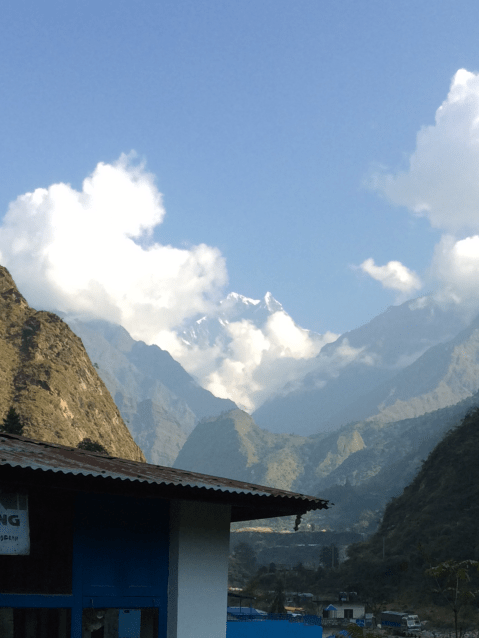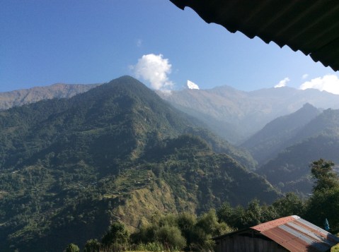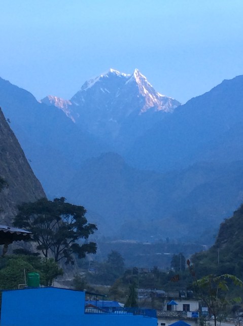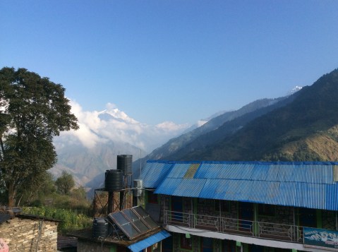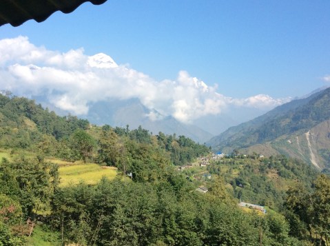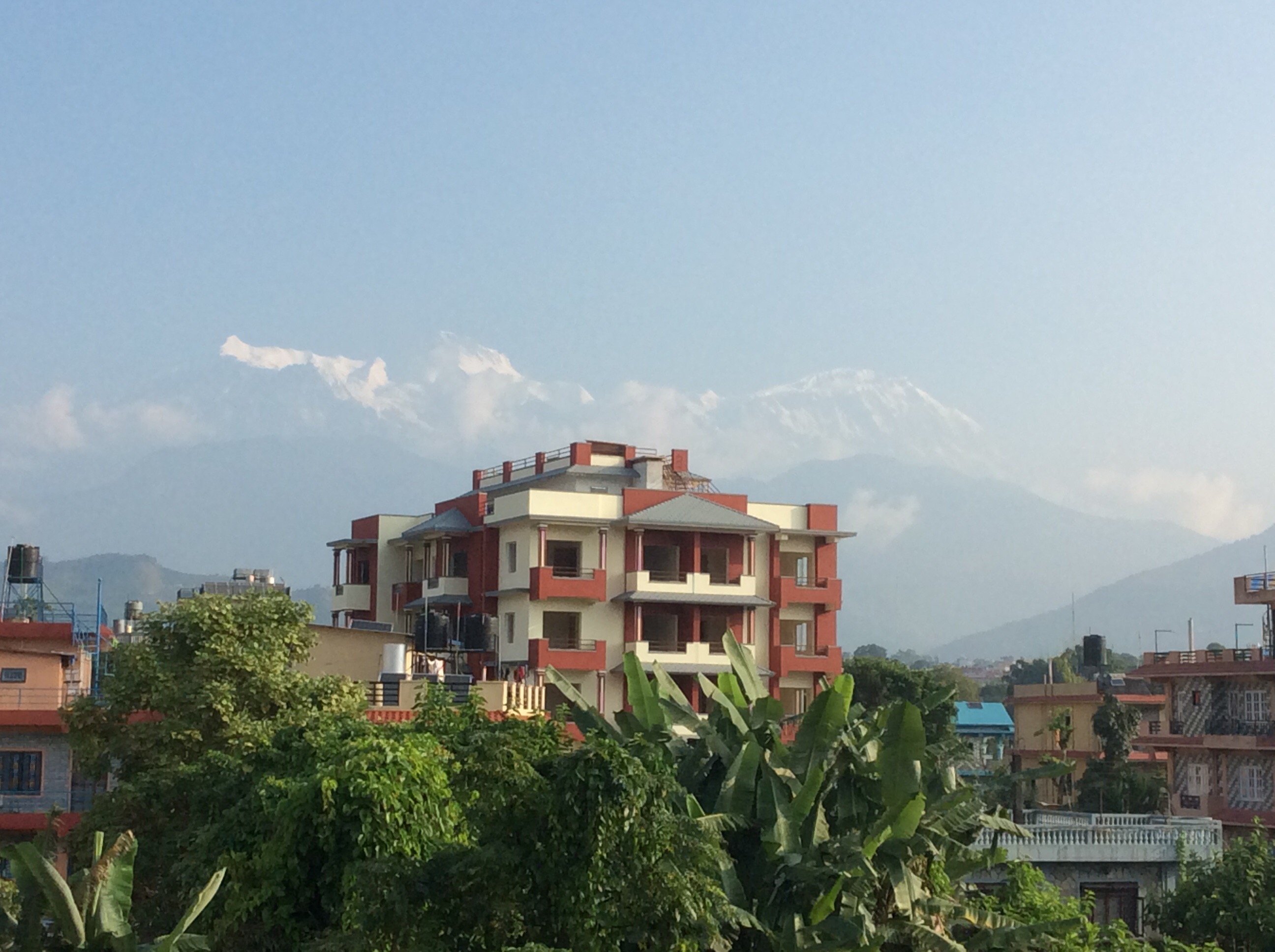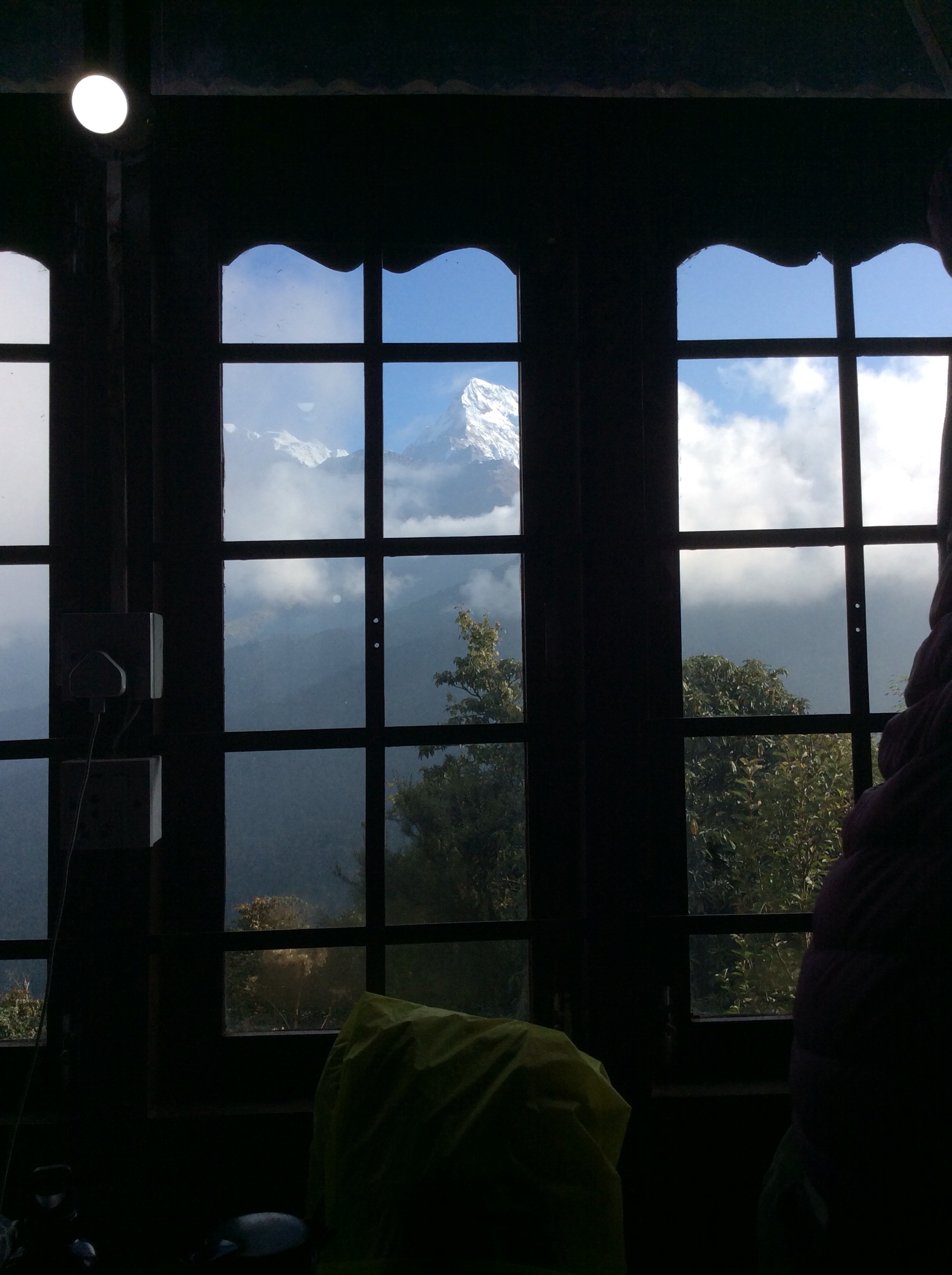 A full day in Pokhara and our hotel room was unusual for us. It had a warm shower, electricity that carried on working, some WiFi, a bog that you sat on and didn’t have to put used toilet roll in a waste paper bin, comfortable beds and a telly. And the view from our bedroom window was breathtaking.