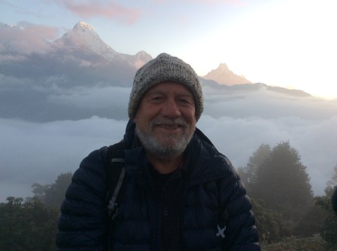 Looking back south to the Annapurna range there was a handsome bloke and a fabulous array of mountains.