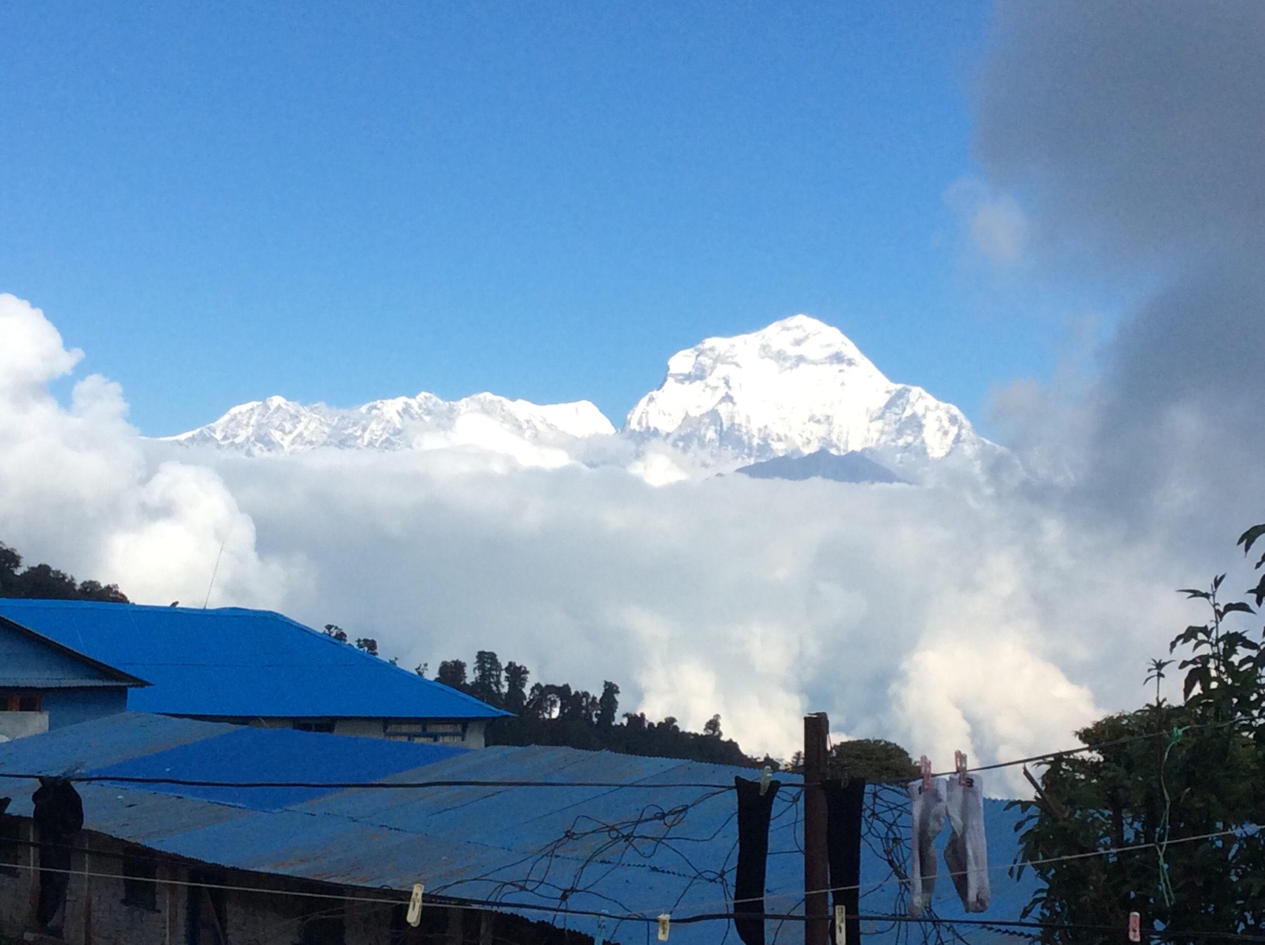 Down at the guest house we could see down the valley towards the Dhaulagiri range and Dhaulagiri itself was peeping through the clouds of the storm that had previously killed the poor little buggers from Korea with their local guides.