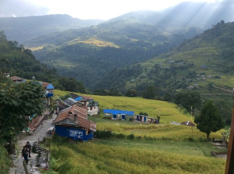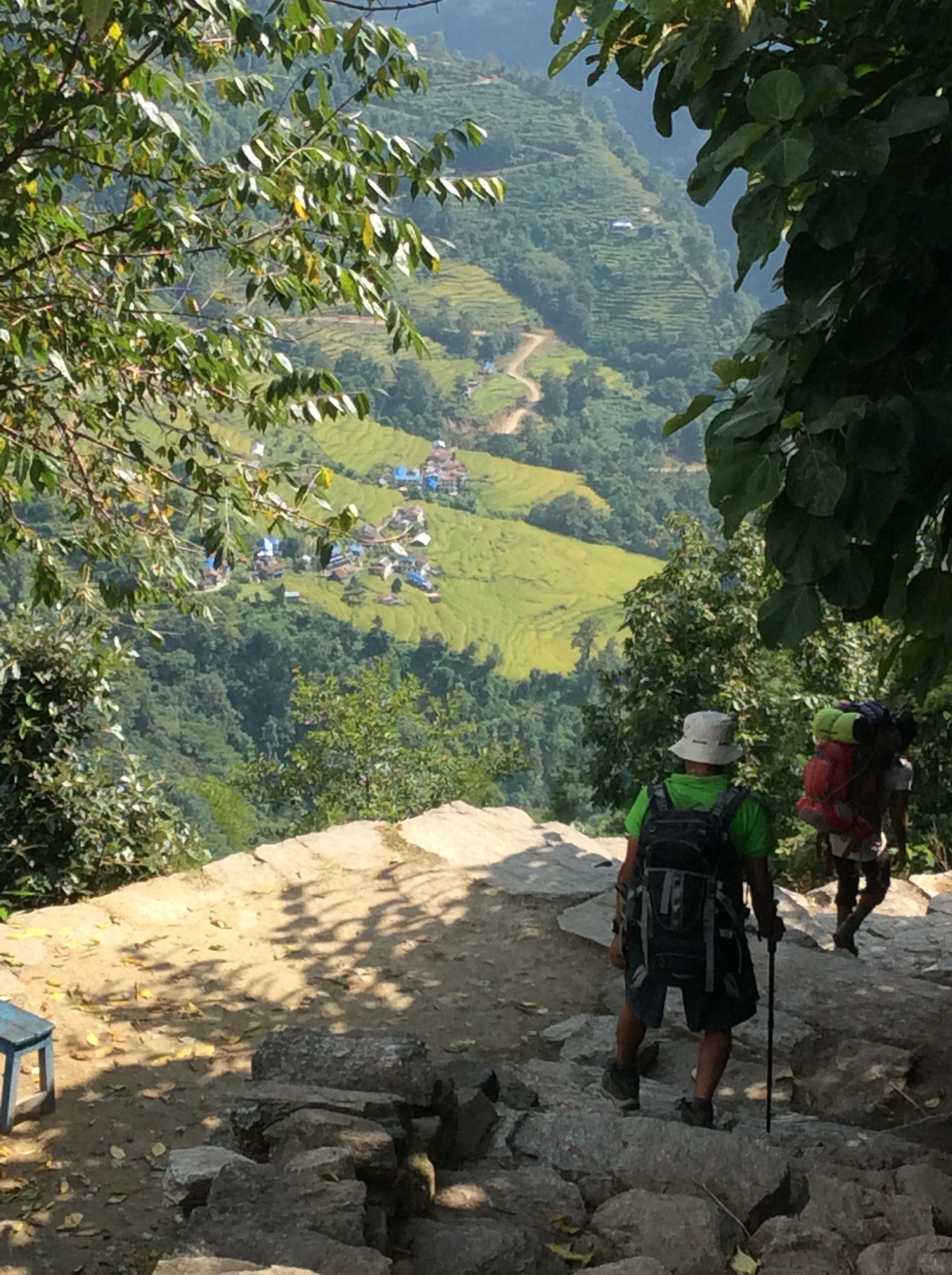 One guy was carrying a full-sized fridge on his back. A group of young lads was carrying huge burdens. And the path isn’t half a mile on the level. It’s 5 miles climbing 4,500 feet. A tough breed. Or many breeds. There are numerous ethnic groupings in Nepal, all living in peace.