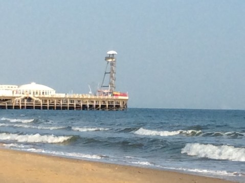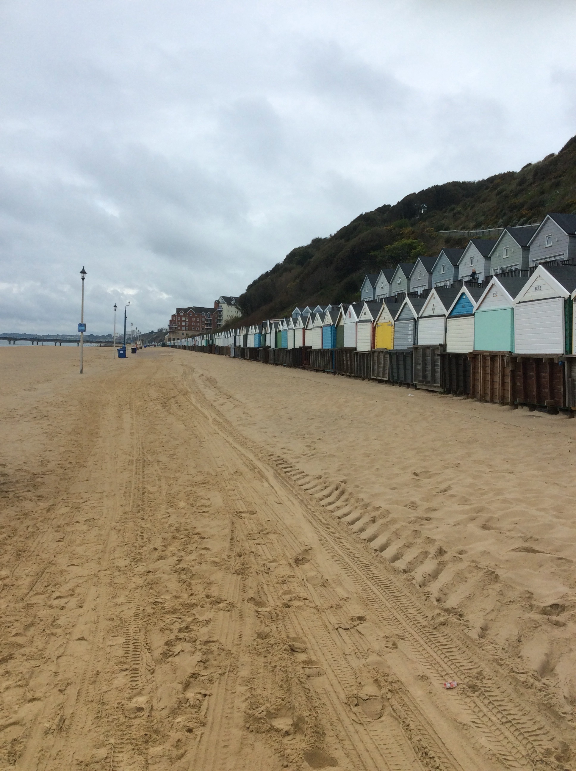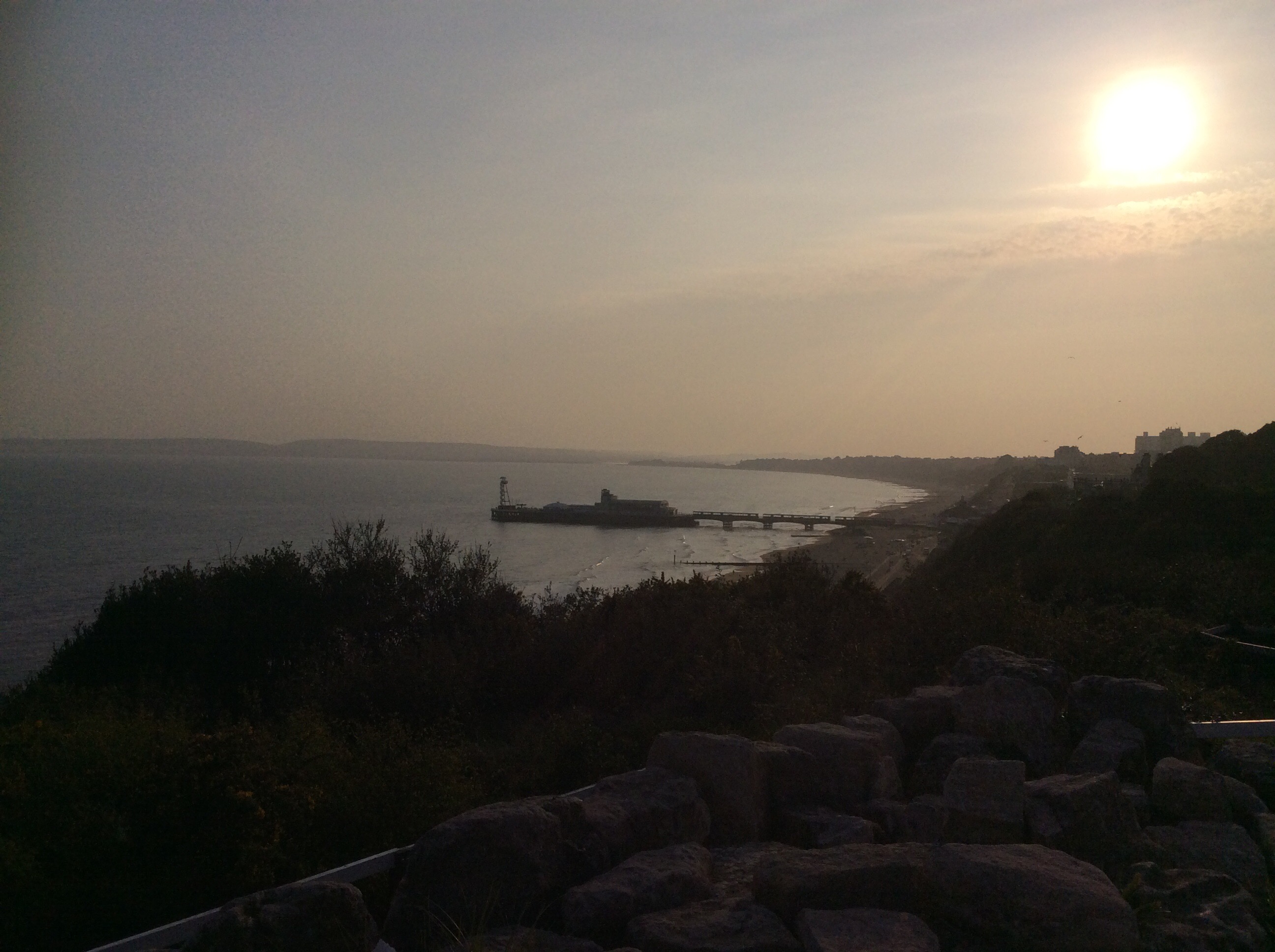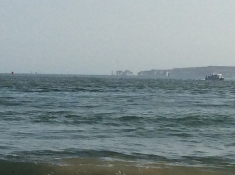 My rucksack is heavy and I’m going to need a couple of days before it feels normal again. Lots of Russians and Romanians on the beach. Probably investing in the local property. The pier at Bournemouth appears and if you see just above the sea line to the right of this poor quality photo there is a barely perceptible pale smudge. That’s the Isle of Wight that is.