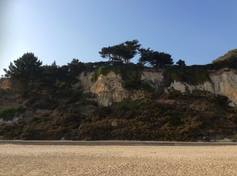 The beach runs up against the chalk cliffs as you walk eastwards towards Bournemouth.