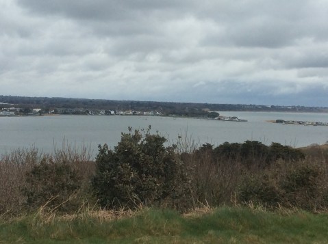 The sand was turning into pebbles but I kept higher up on firm ground to avoid the crunching exhaustion of a pebble dash. Hengistbury isn’t high but it has a great 360 view. Looking northwards into the almost landlocked Christchurch bay.