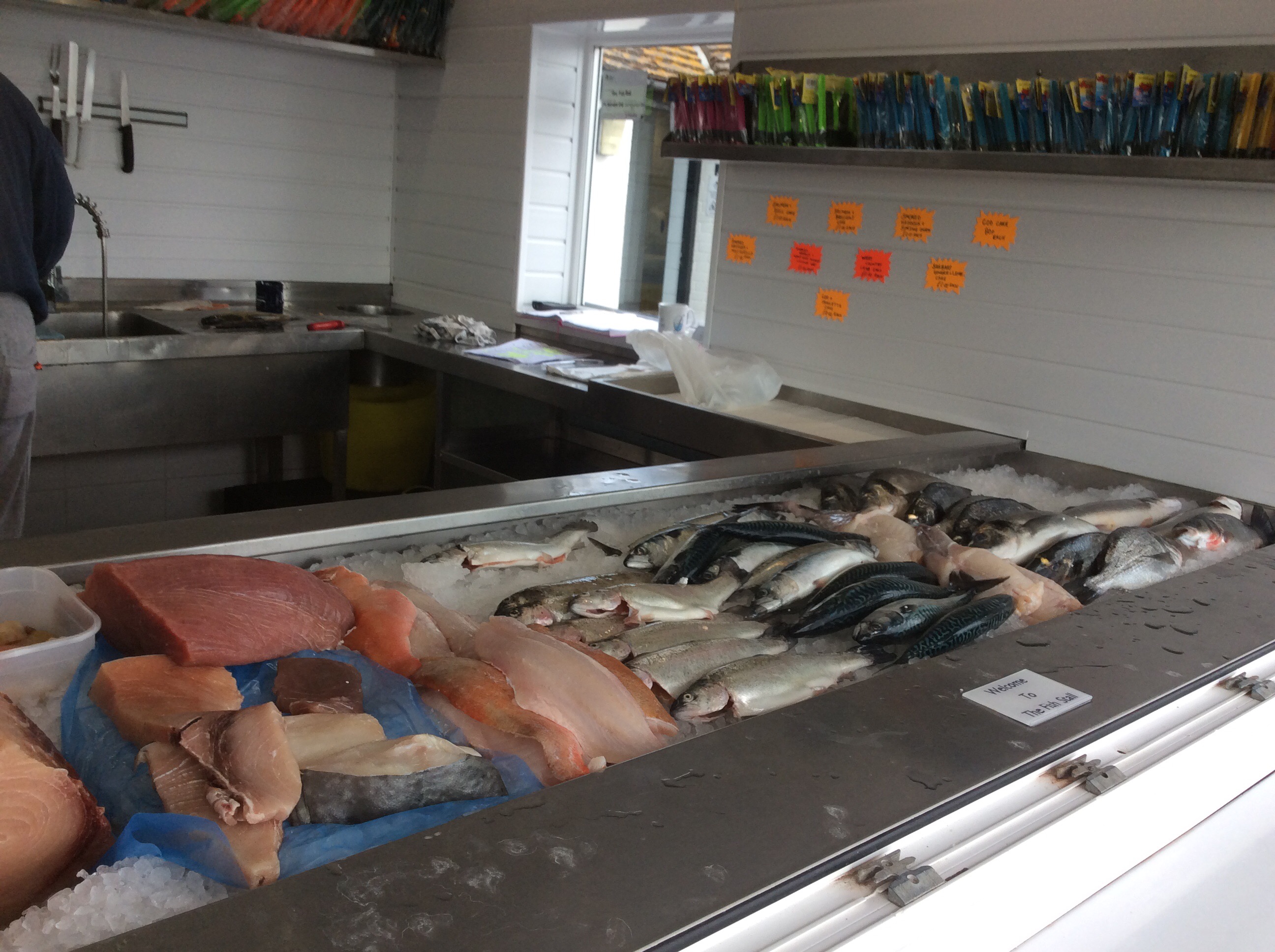 Climbing up to the quay there was a sight for sore eyes – a fish shop!