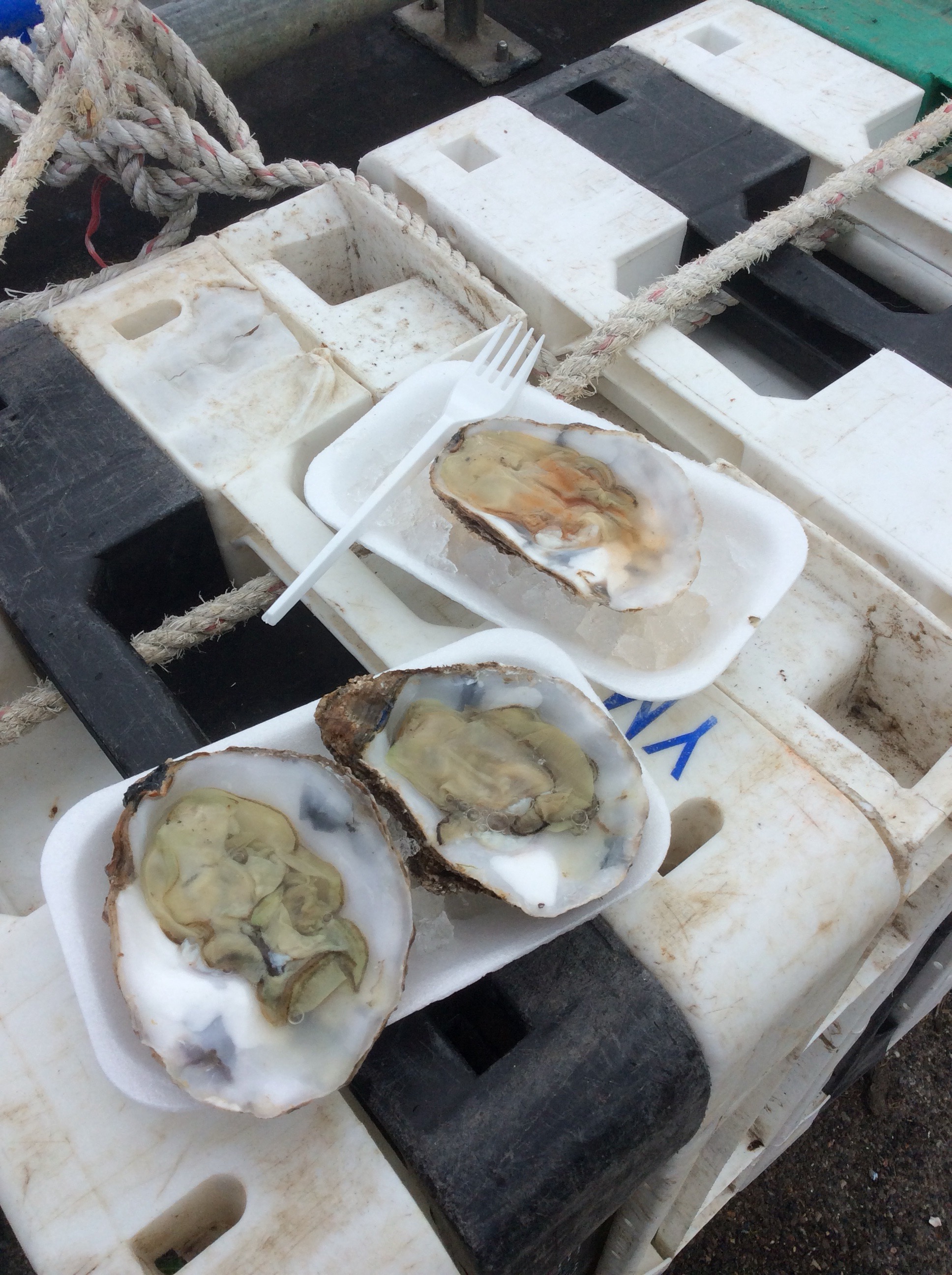 I bought three big oysters for my lunch and the bloke opened and prepared them for me. Delicious.
