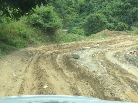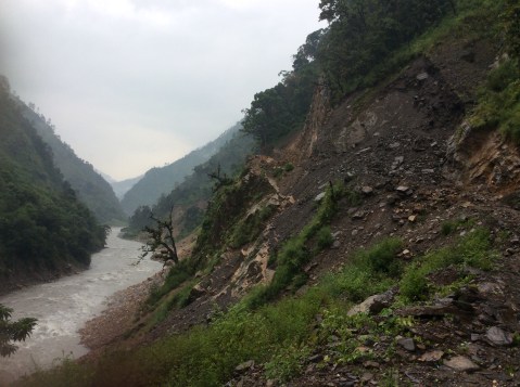 The weather had been cloudy but it brightened up, which was a blessing as the road from Ghorka to Arughat was featured on a French programme on the world’s most dangerous roads, and monsoon rain would have been terrible. As it happened it wasn’t that dangerous and, although conditions were grim in places, we didn’t have to abandon the car and walk. That happened to Bhim last time and he arrived in Arughat in the dark at 9.30 at night.