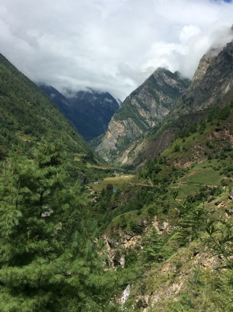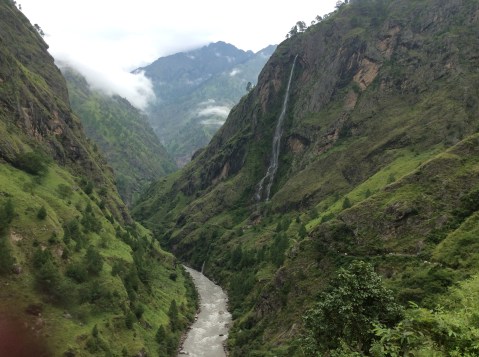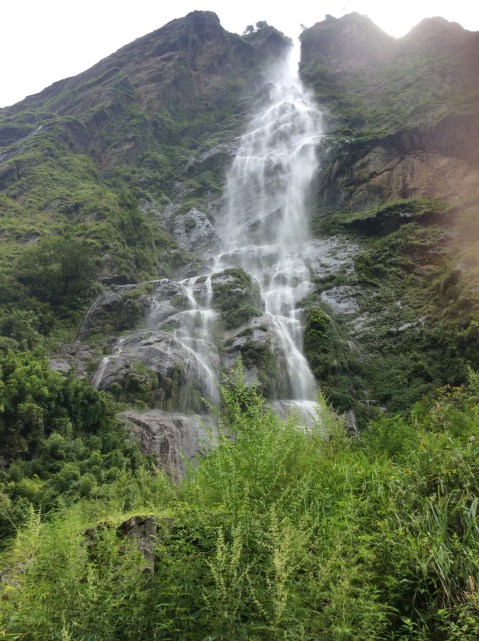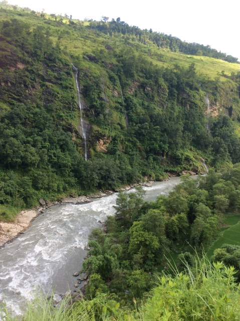 Just a few more miles, past a small but lovely waterfall, and there we were. Soti Khola. Soti was the nearest village to the epicentre of the Nepalese earthquake which killed 9,000 people and made 3.5m homeless only four years ago. They’ve done a good job on restoration.
