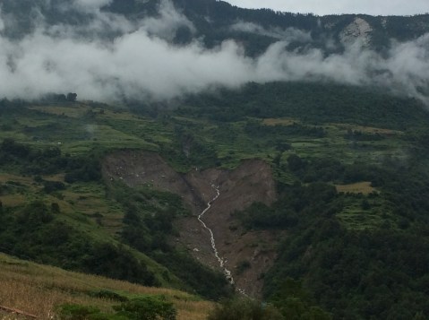Above the village was a big gash in the hillside where a landslide had taken out a few houses two years ago. The survivors moved up above it and rebuilt houses. Hardy breed.