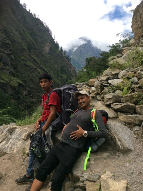 I slept and then we set off late. I got my rucksack on and managed about 200 metres before I slumped down onto my butt on a rock. I asked Bhim to swap rucksacks, as his was lighter than mine, something he’d been asking me to do.