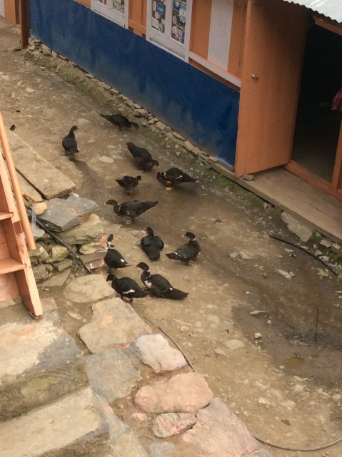 And finally we arrived at our destination. And it was shut. We let Dannii go back home and he scampered down the valley like a puppy. Back to school for him tomorrow. We waited but nobody came so we donned our rucksacks, me for the first time today, and walked across the village to the next teahouse, which was open and gave us a hot shower and food and a room. Long sentence wasn’t it!