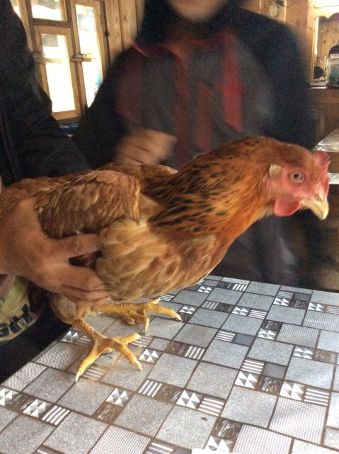 He nipped down to the butcher and came back to say that the butcher hadn’t got a chicken but he would go out to find one. Twenty minutes later he appeared in the teahouse and brought the chicken over for me to approve. I stroked it and said ‘see you later Old cock’.